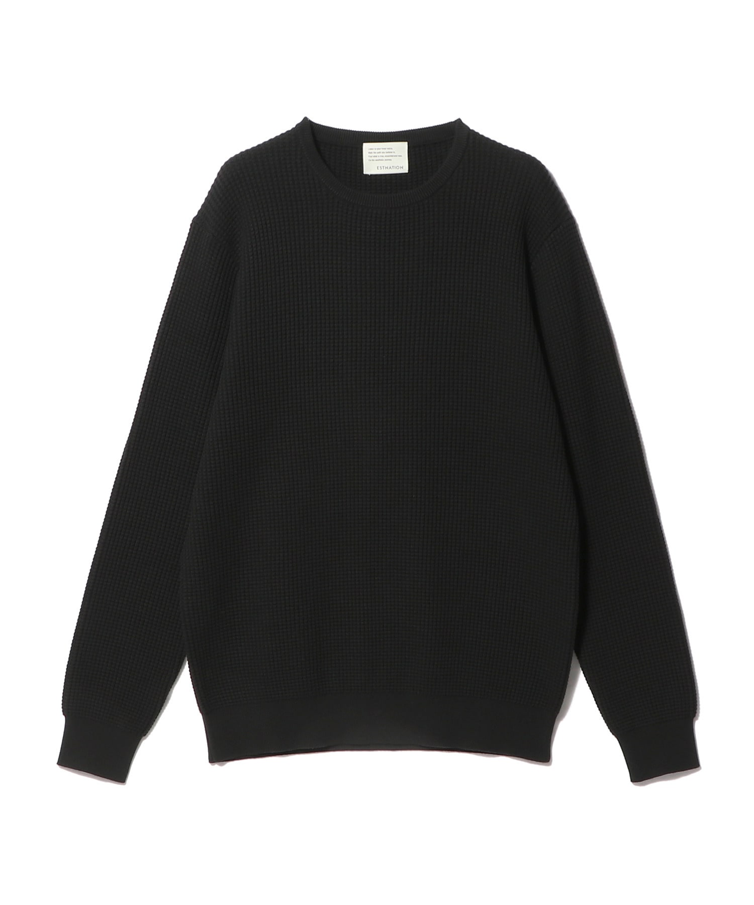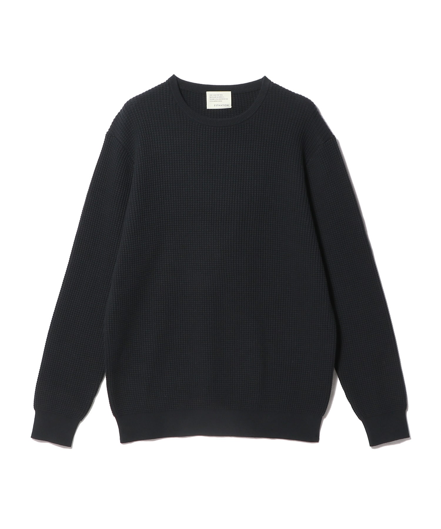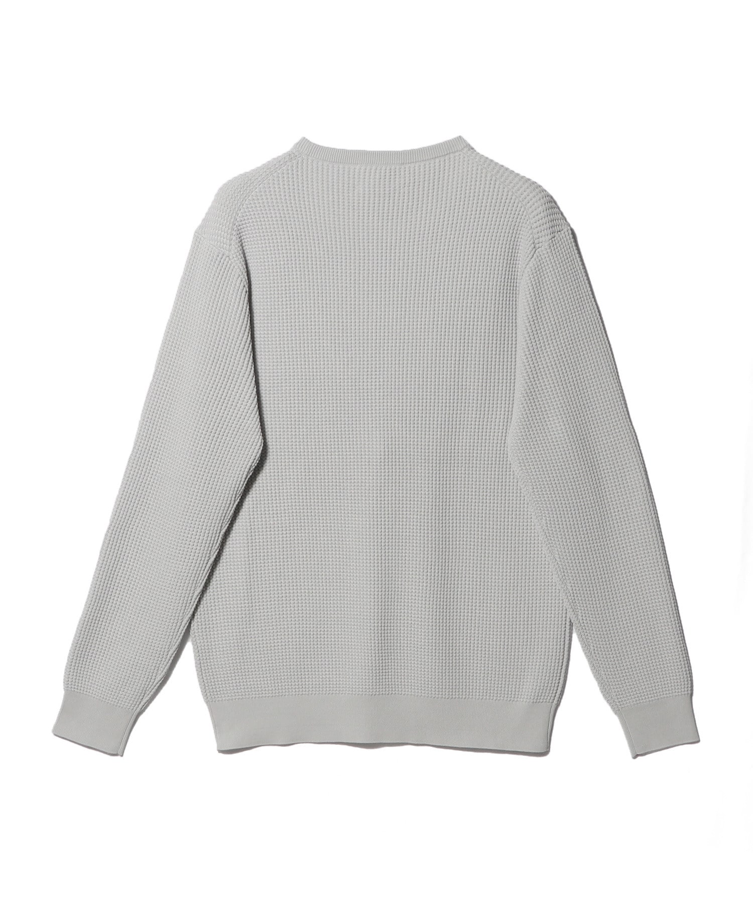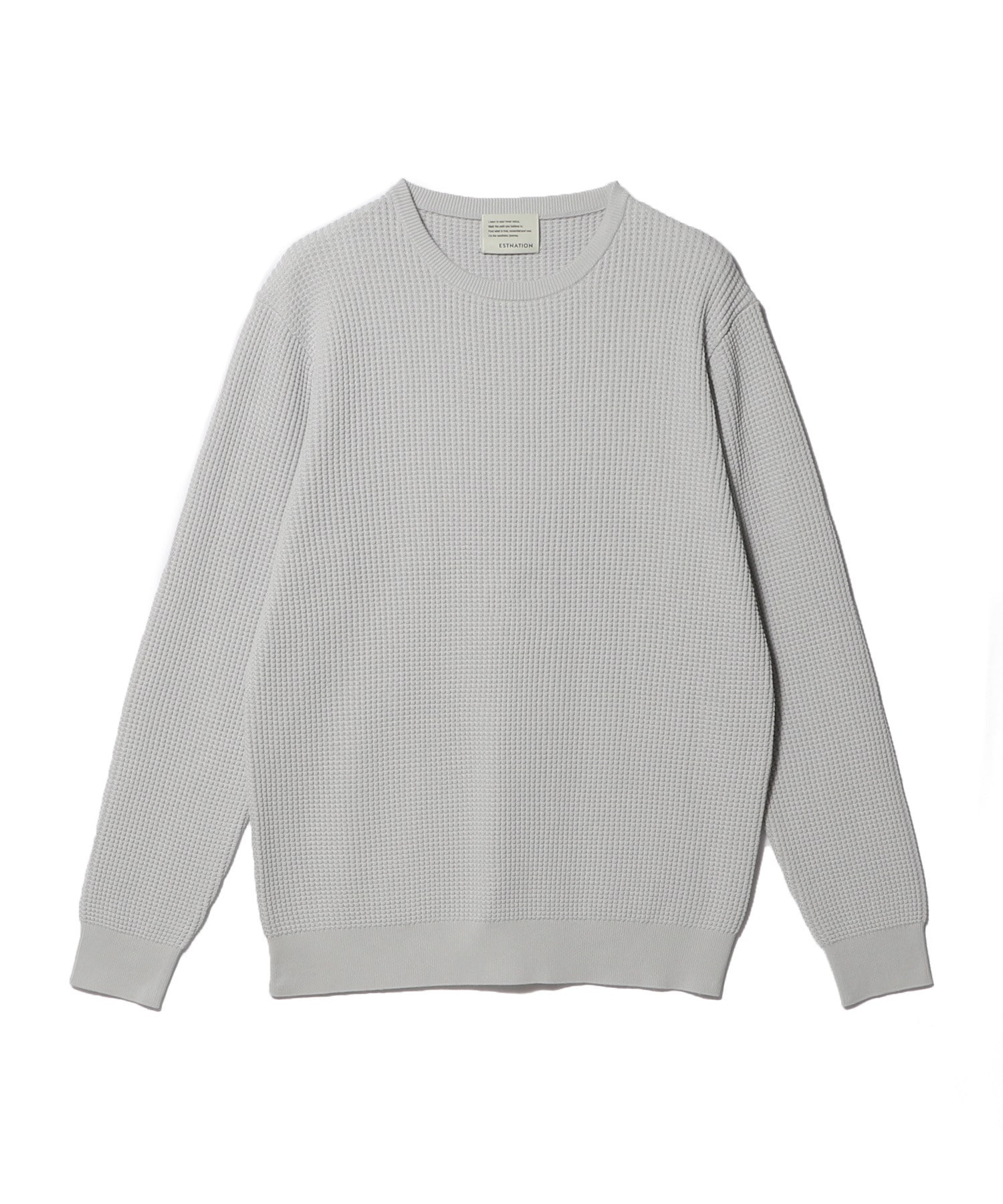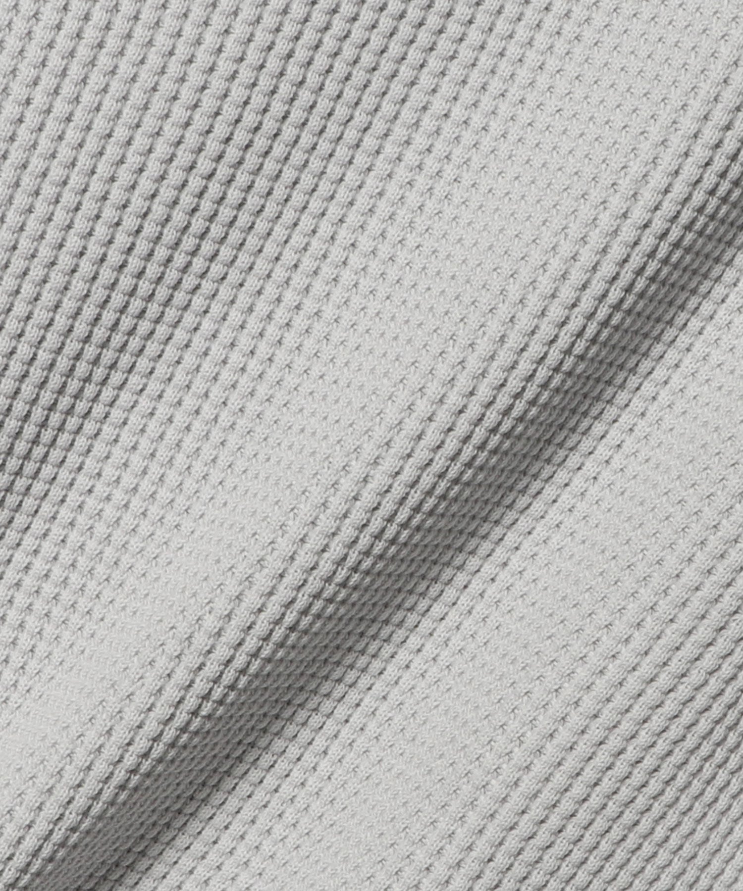 しなやかで上品な光沢を持つ素材に、ワッフル編みならではの立体感を加えることで、一枚着でも存在感のある仕上がりです。