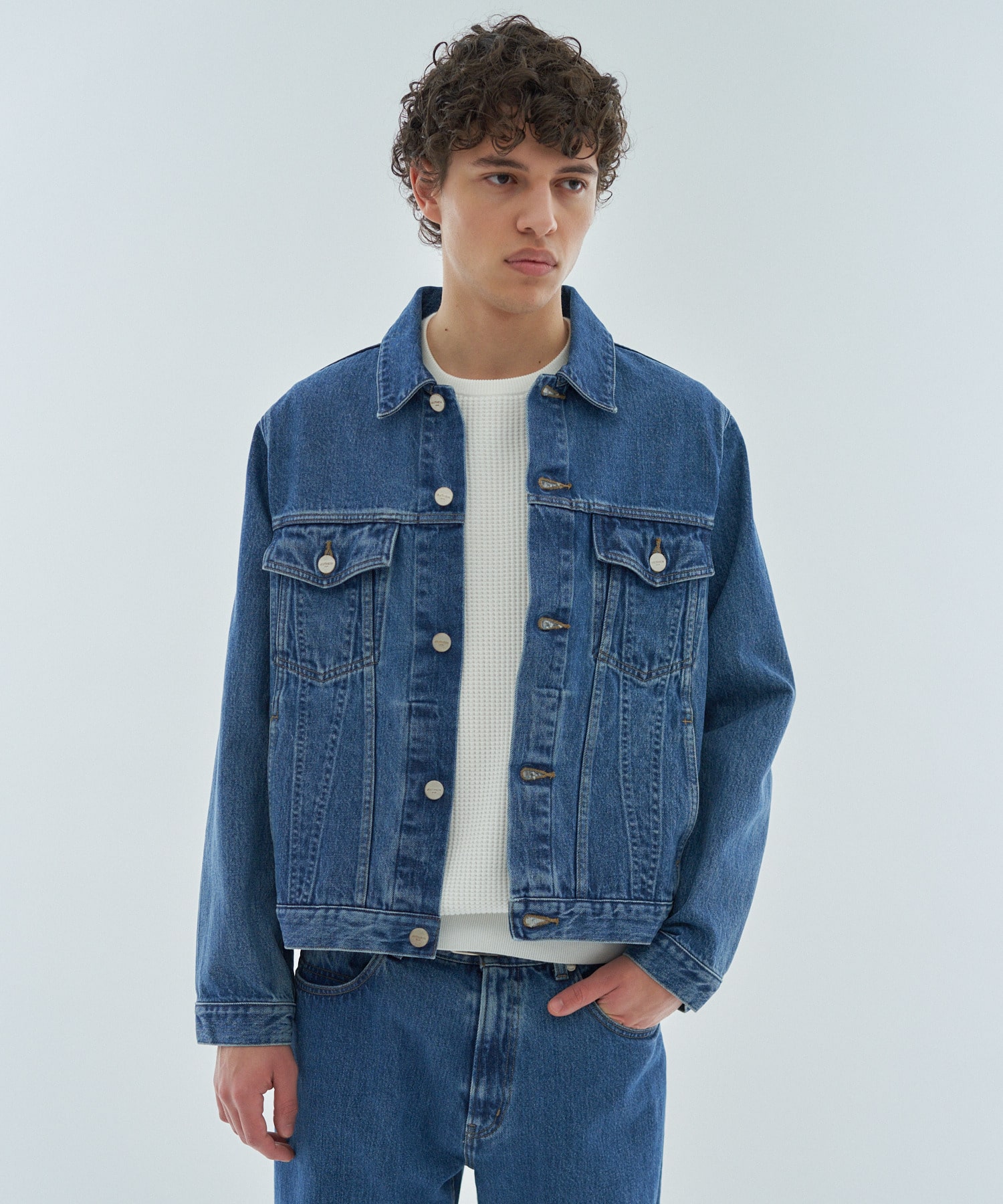 4th型をベースにレギュラーフィットでデザインしたデニムジャケット。