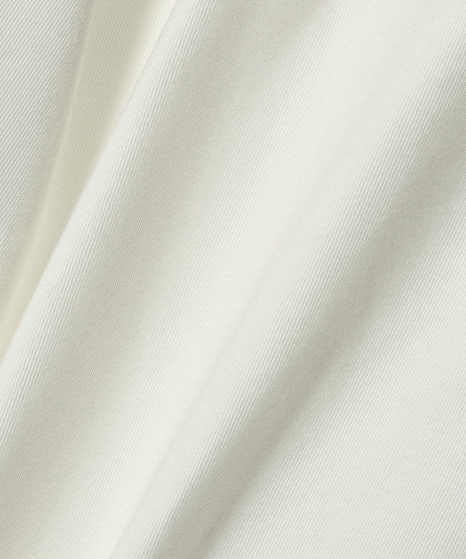 フロントに施したタックが特徴で、内側は深く、外側は浅く設定することで、ウエスト周りに立体感のある表情を生み出しています。