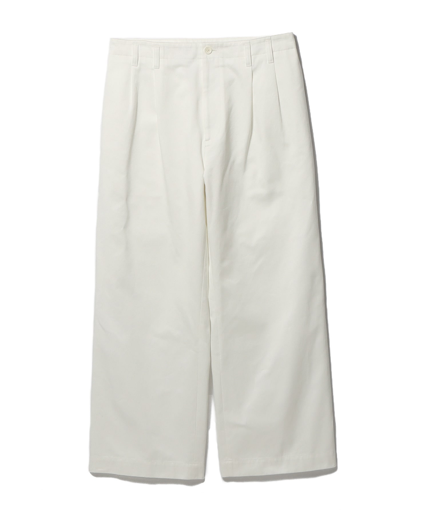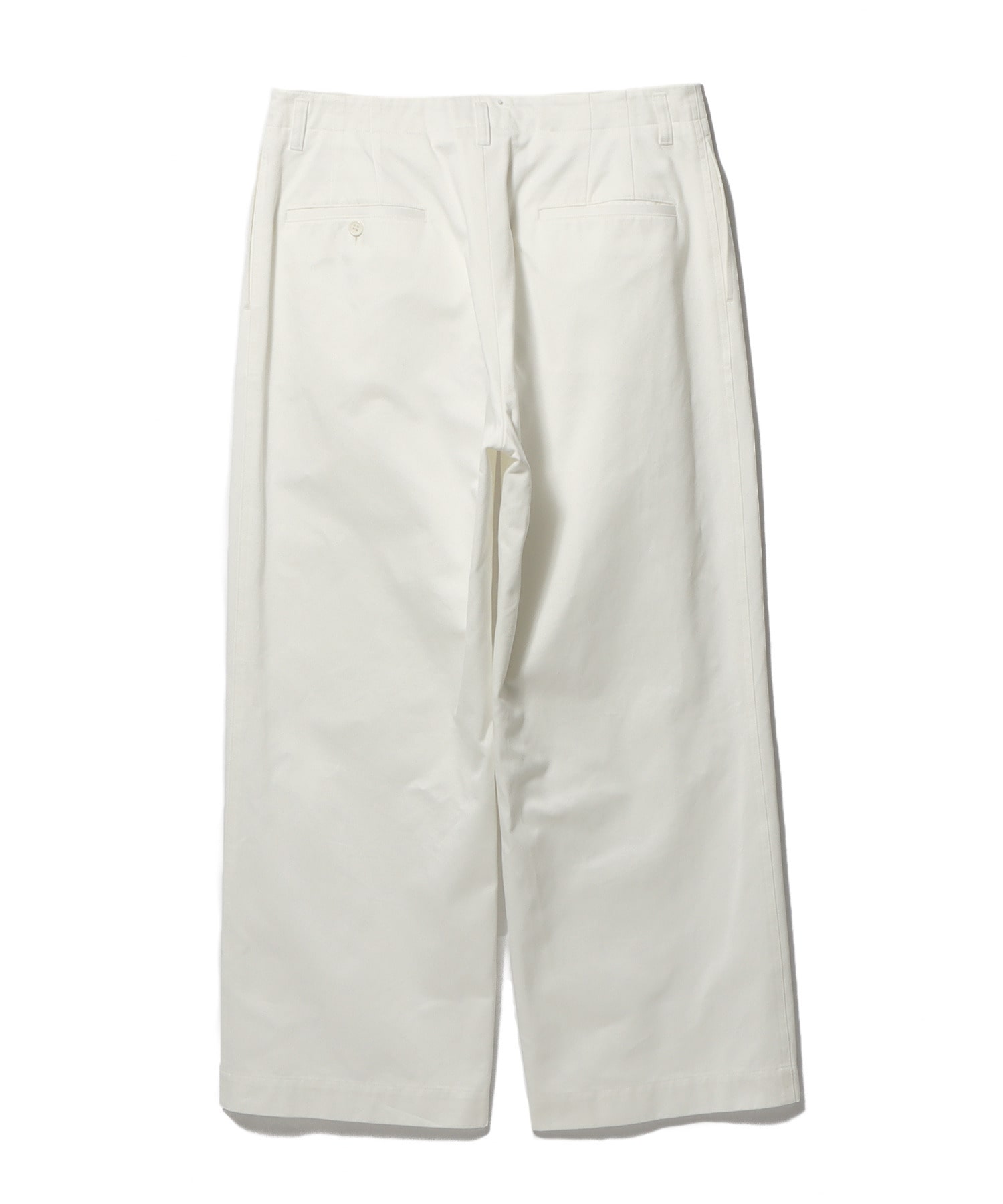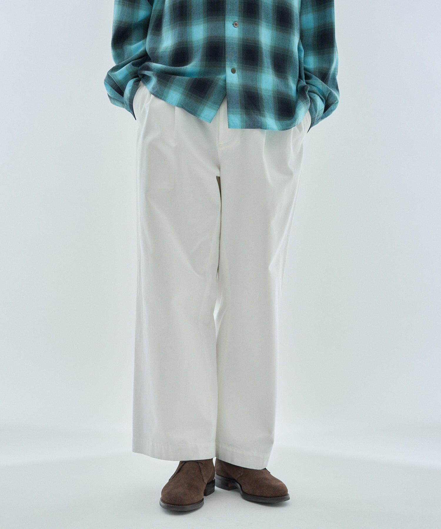 高密度に織り上げたウエストポイント生地を使用したワイドチノパンツ。