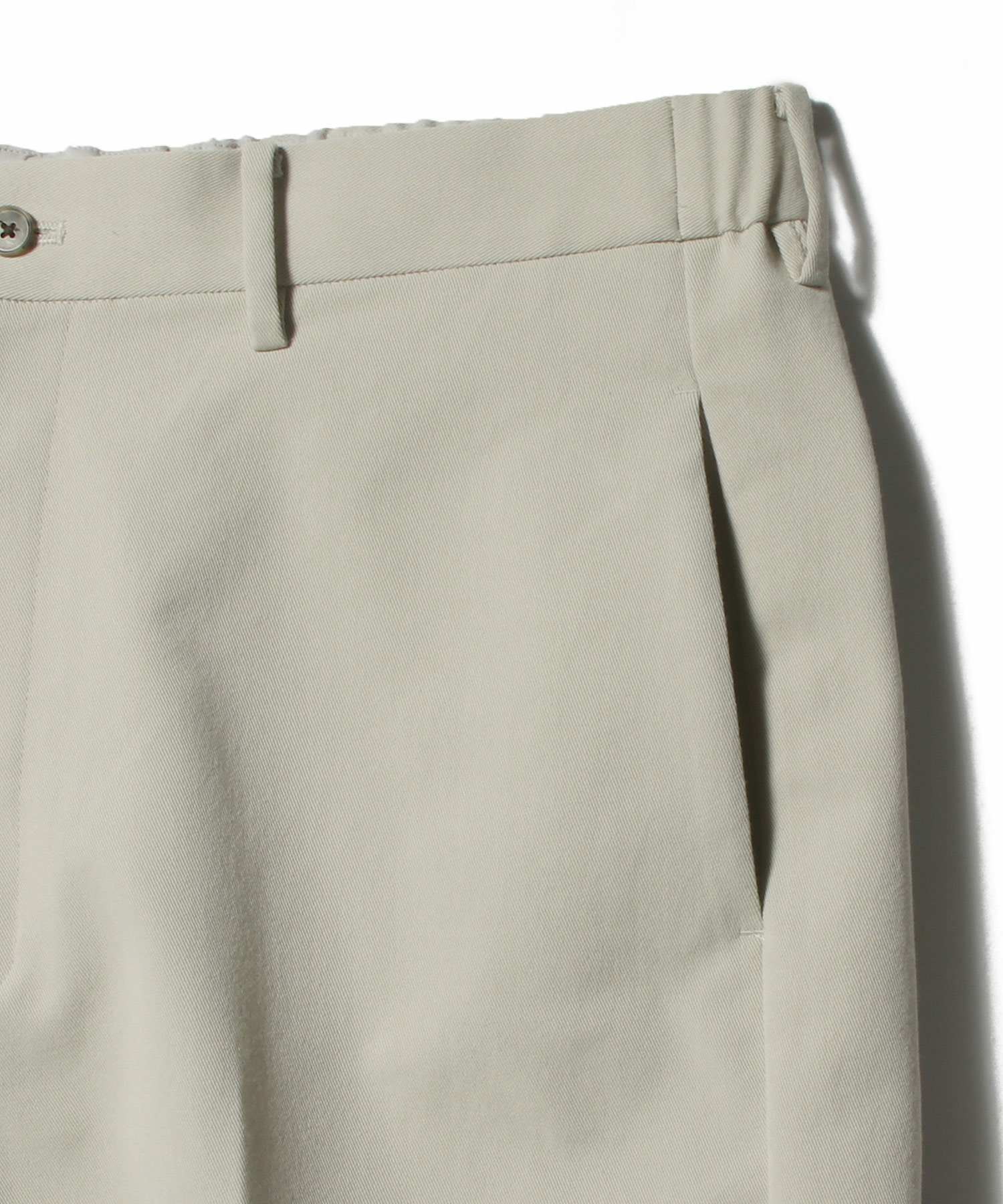 チノのような程よい厚みと、ツイル目がしっかりと立った表情のある素材を使用したショートパンツ。