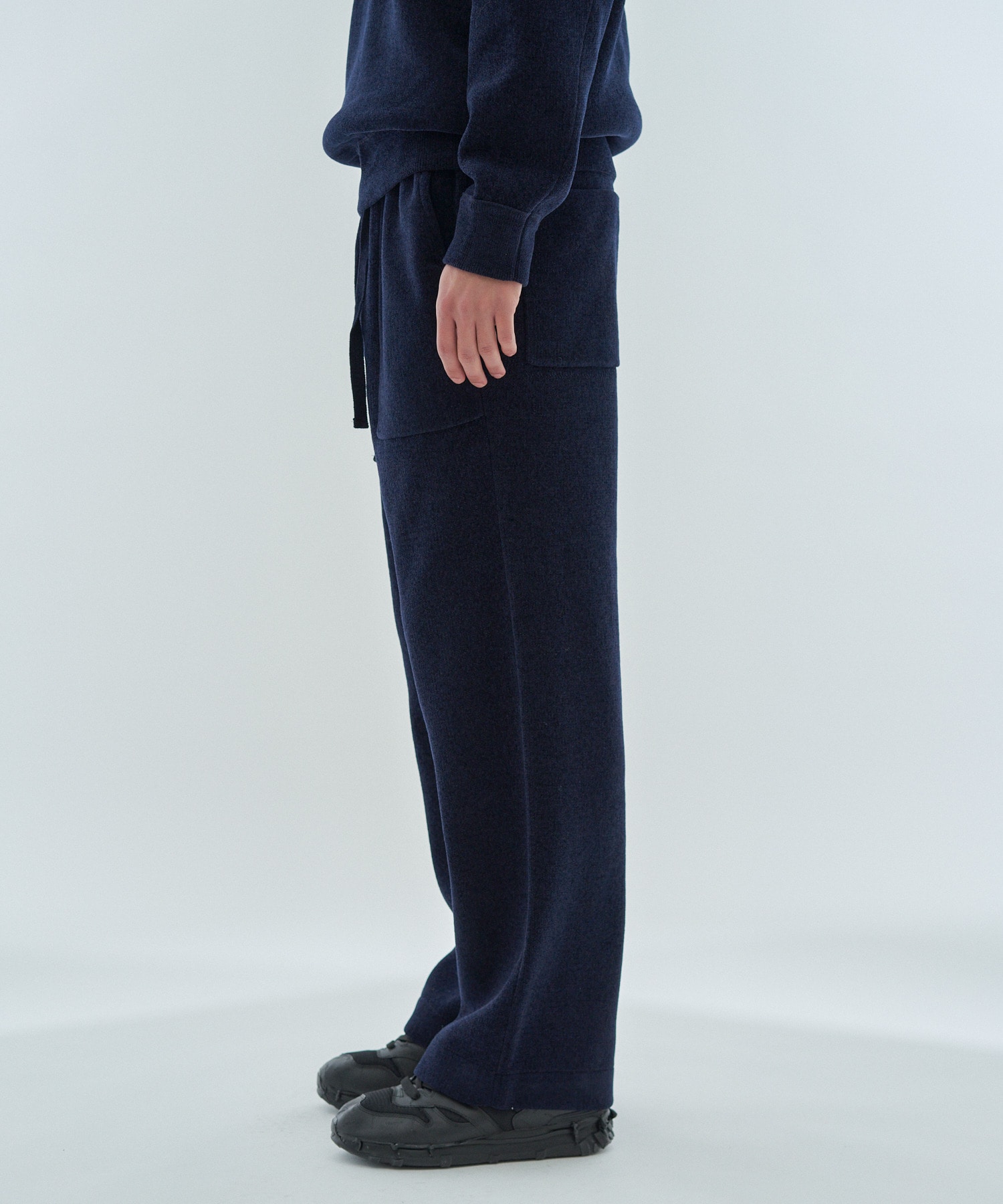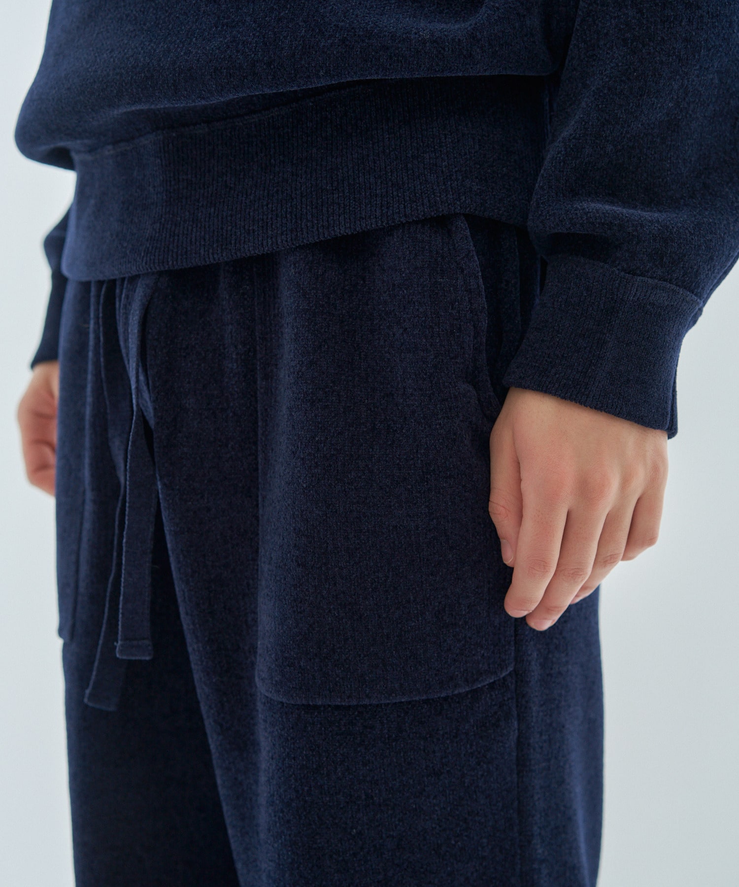 肌触りの良いポリエステルモール素材を使用したイージーパンツ。