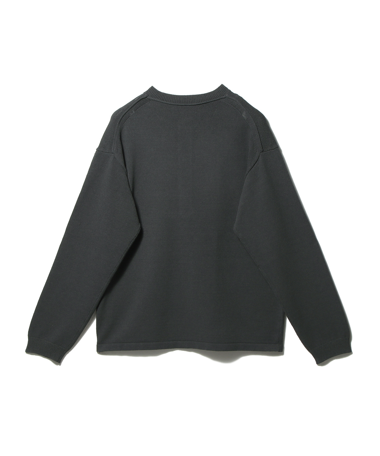レーヨン×ナイロンのストレッチ糸をベースに、コットンタッチのマットでナチュラルな表面感を持たせることで、ニットならではの確かな存在感と、美しい落ち感を両立しています。