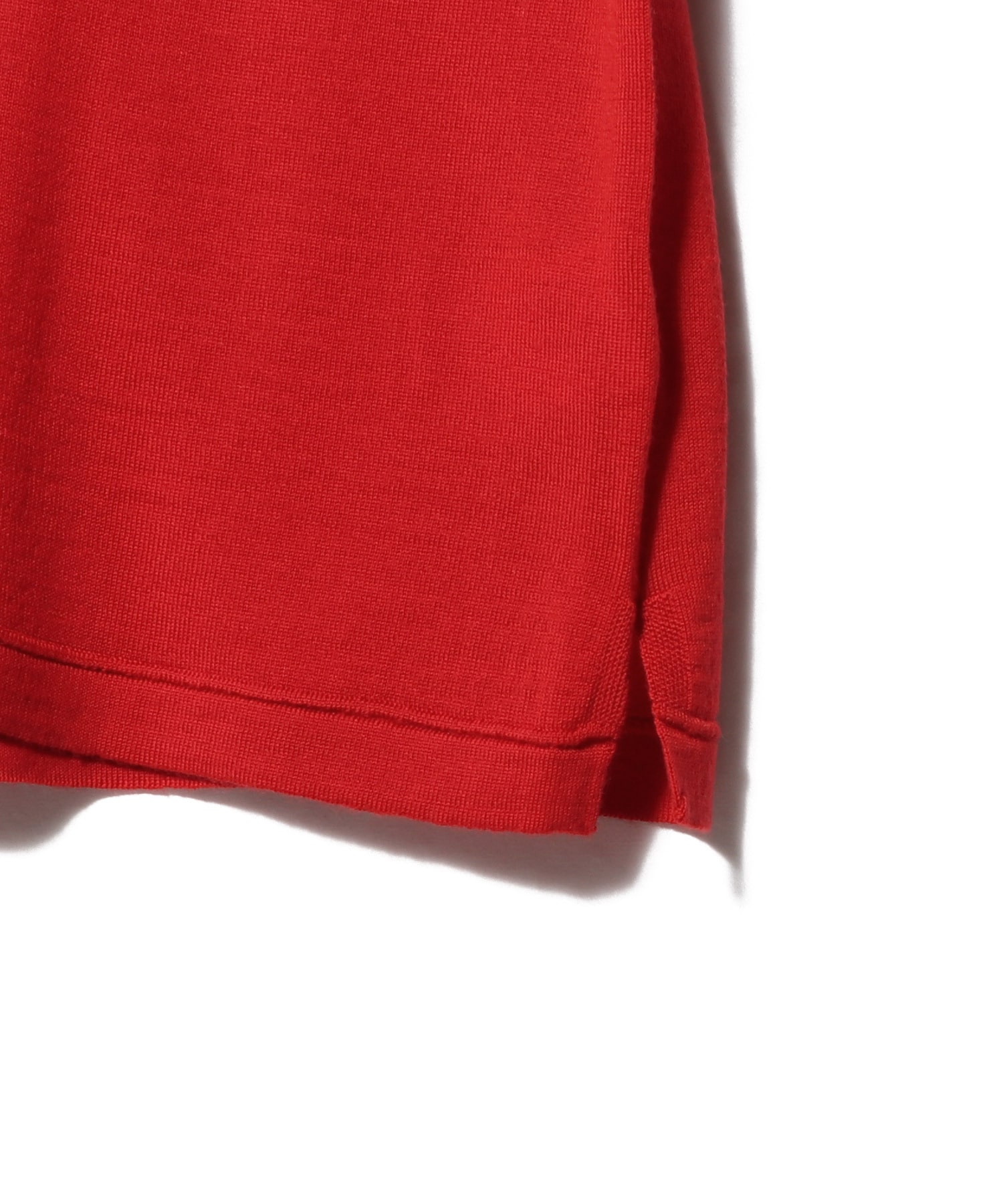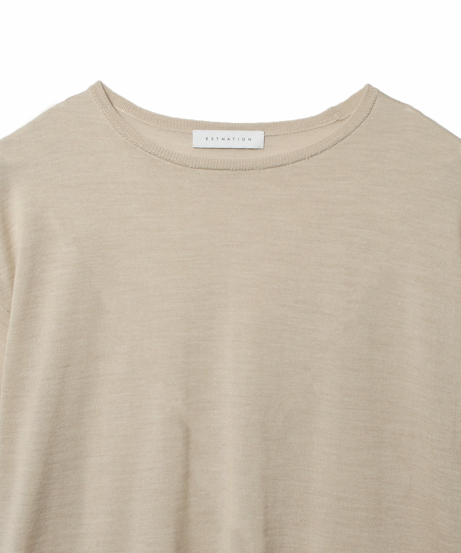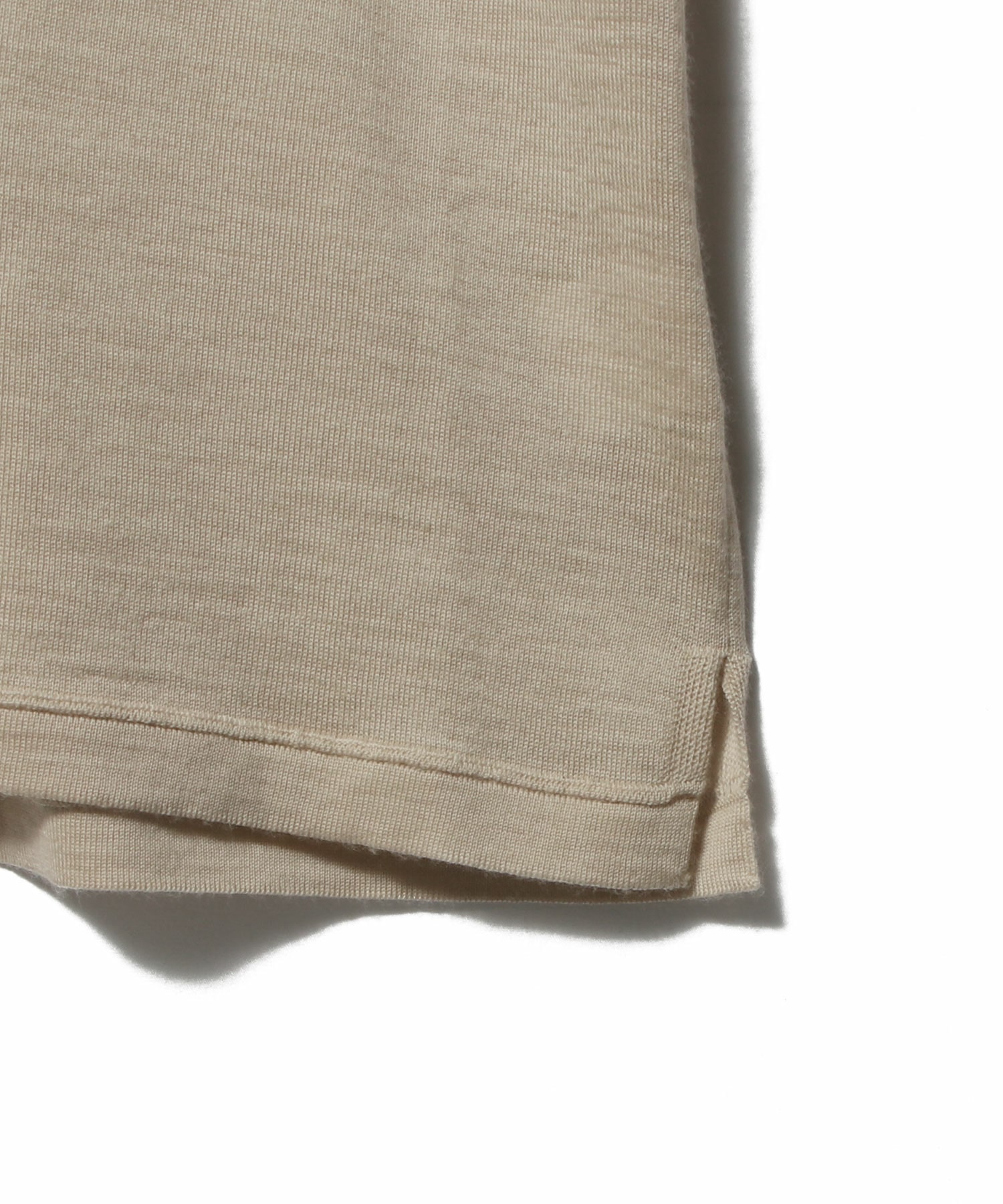 カットソーのような見え方ながら、肩線と襟部分にニットならではのリンキング仕様を施すことで、さりげない上質感と差別化を図りました。