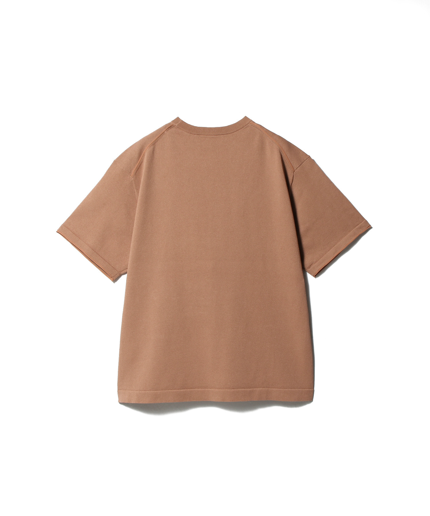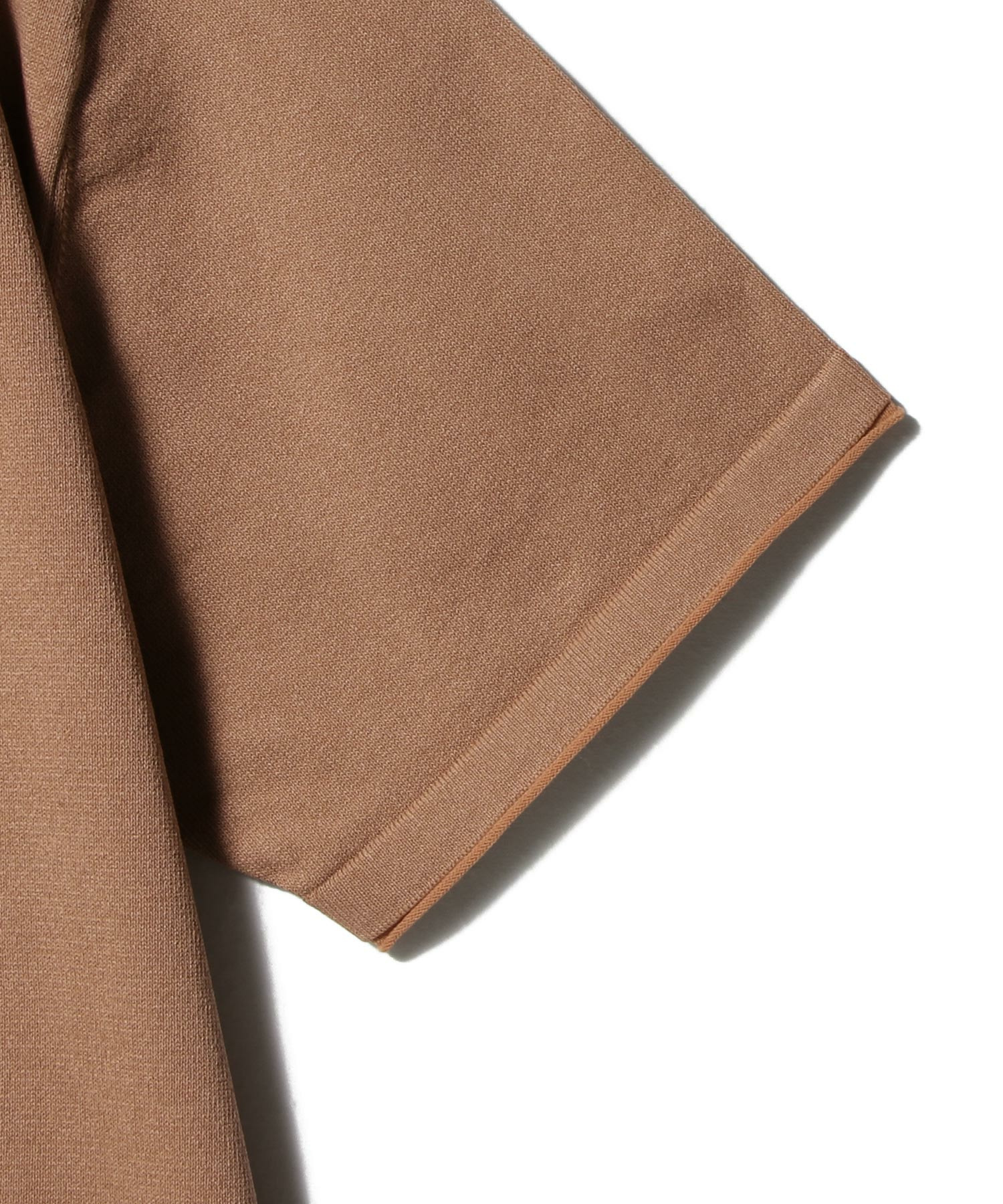 吸湿性のあるポリエステルをプレーティングすることで、夏場でも快適なタッチに仕上げています。抗菌防臭効果を備えているのも特長。デザインはベーシックなニットTで、ブリックオレンジを挿し色にしたニュアンスカラーの3色展開。色合わせ次第で幅広いコーディネートを楽しめる一枚です。