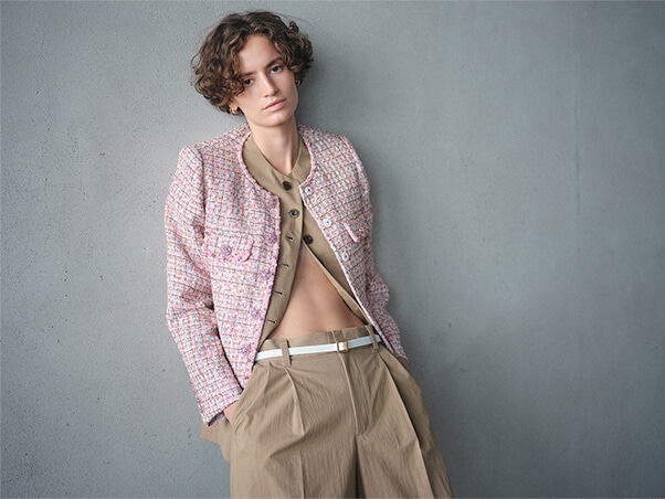 春いちばんに楽しみたいツイードジャケット。クラシックな佇まいはキープしながらも、華やかなカラーリングとコーディネートで、2023年らしいファンシースタイルを表現。