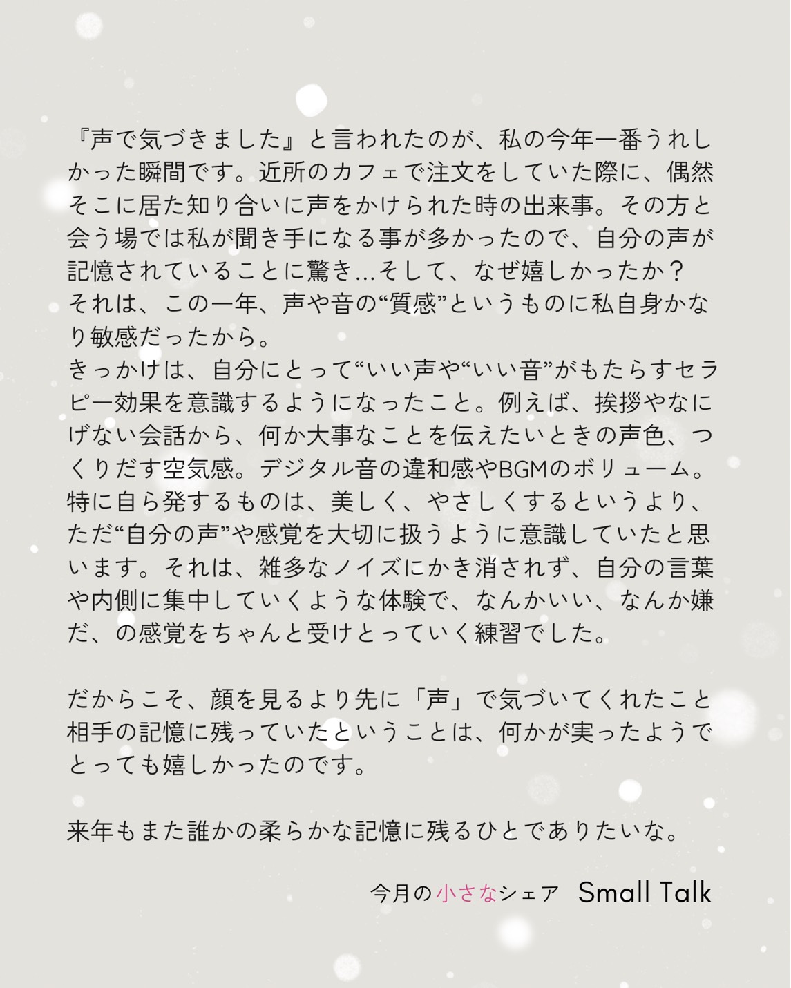 それぞれの心に、それぞれの物語に、やわらかく透き通った風を招き入れ心地よいリズムと共に始まる、軽やかな一歩を味方に進もう。