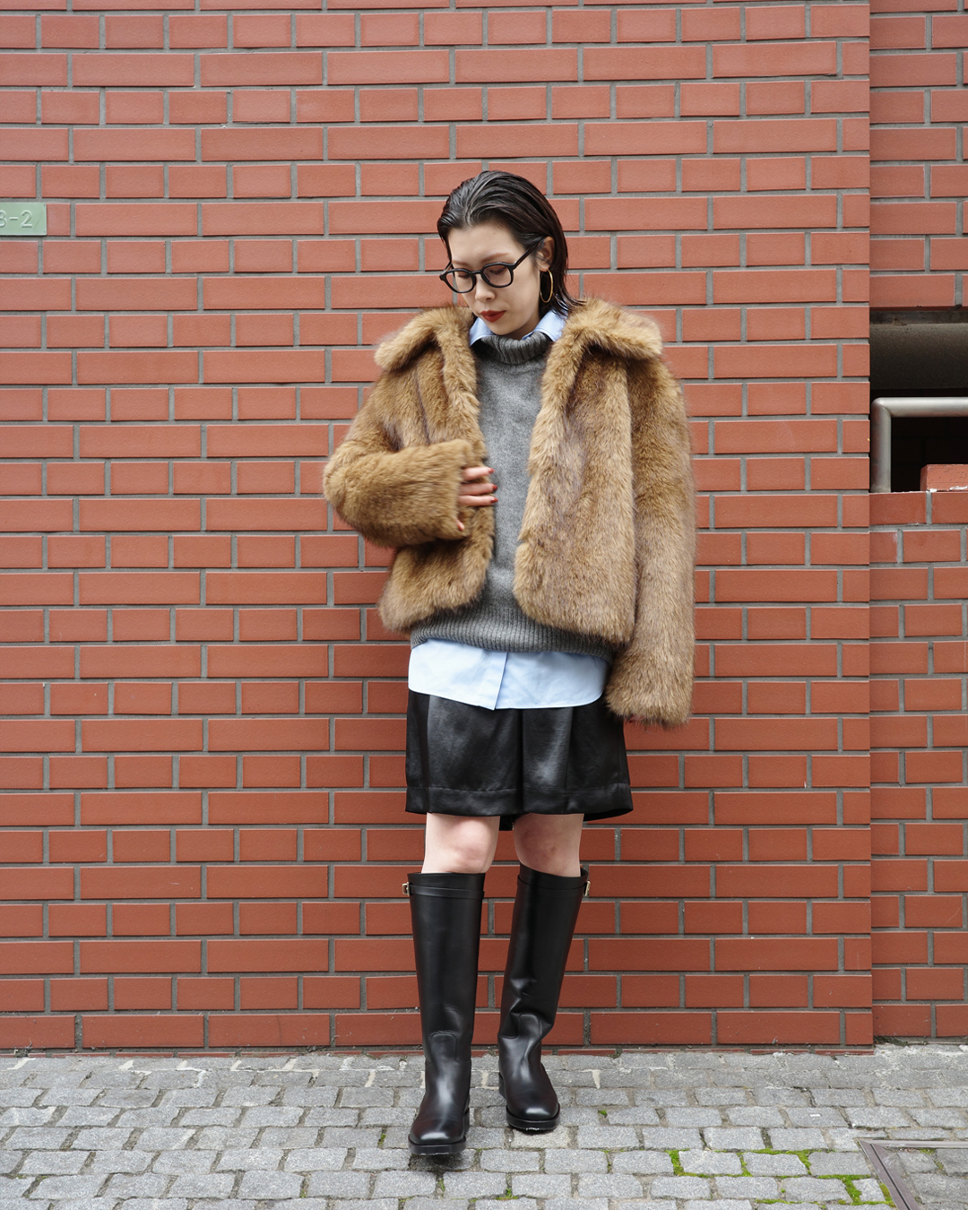 端正な雰囲気を崩さずシャツをレイヤードし、ファーブルゾンをカジュアルに纏う。