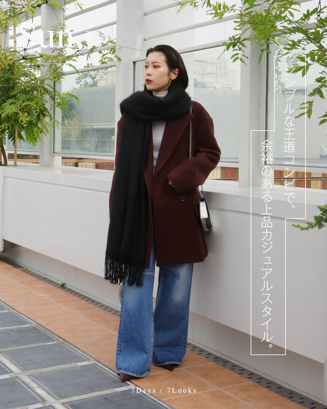 07. SUNDAY シンプルな王道コンビで、余裕のある上品カジュアルスタイル。