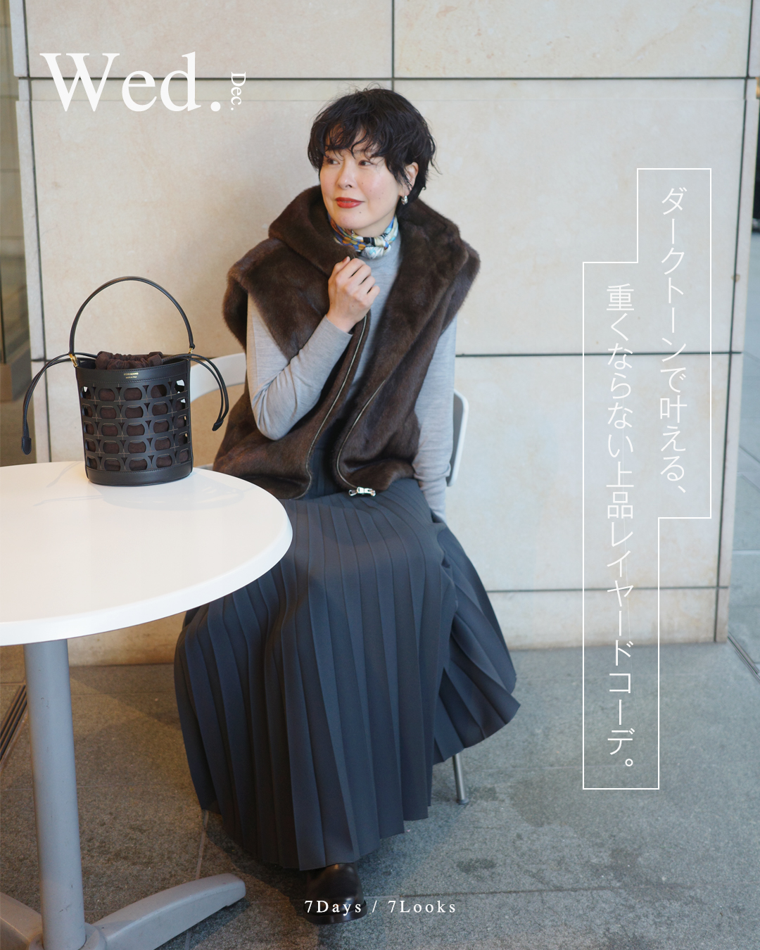03. WEDNESDAY ダークトーンで叶える、重くならない上品レイヤードコーデ。