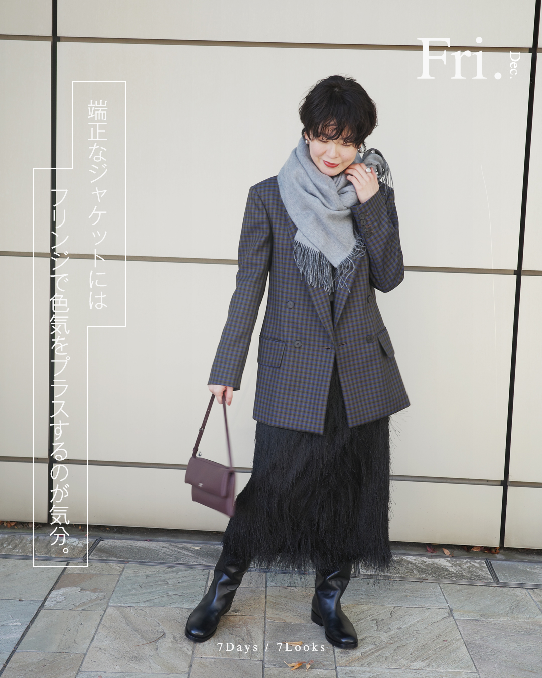 05. FRIDAY 端正なジャケットにはフリンジで色気をプラスするのが気分。