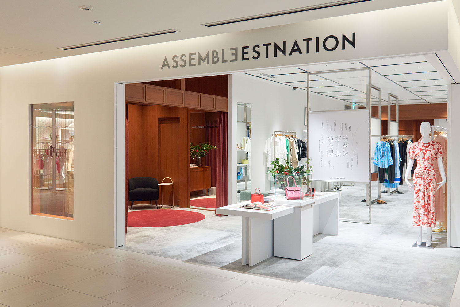 2025年4月12日にASSEMBLE ESTNATIONの1号店としてオープンしたGINZA SIX店。「モダンガールの心得」をコンセプトに日本の歴史や伝統とモダンを合わせもった美しい街銀座のお客様に向けてご提案しています。