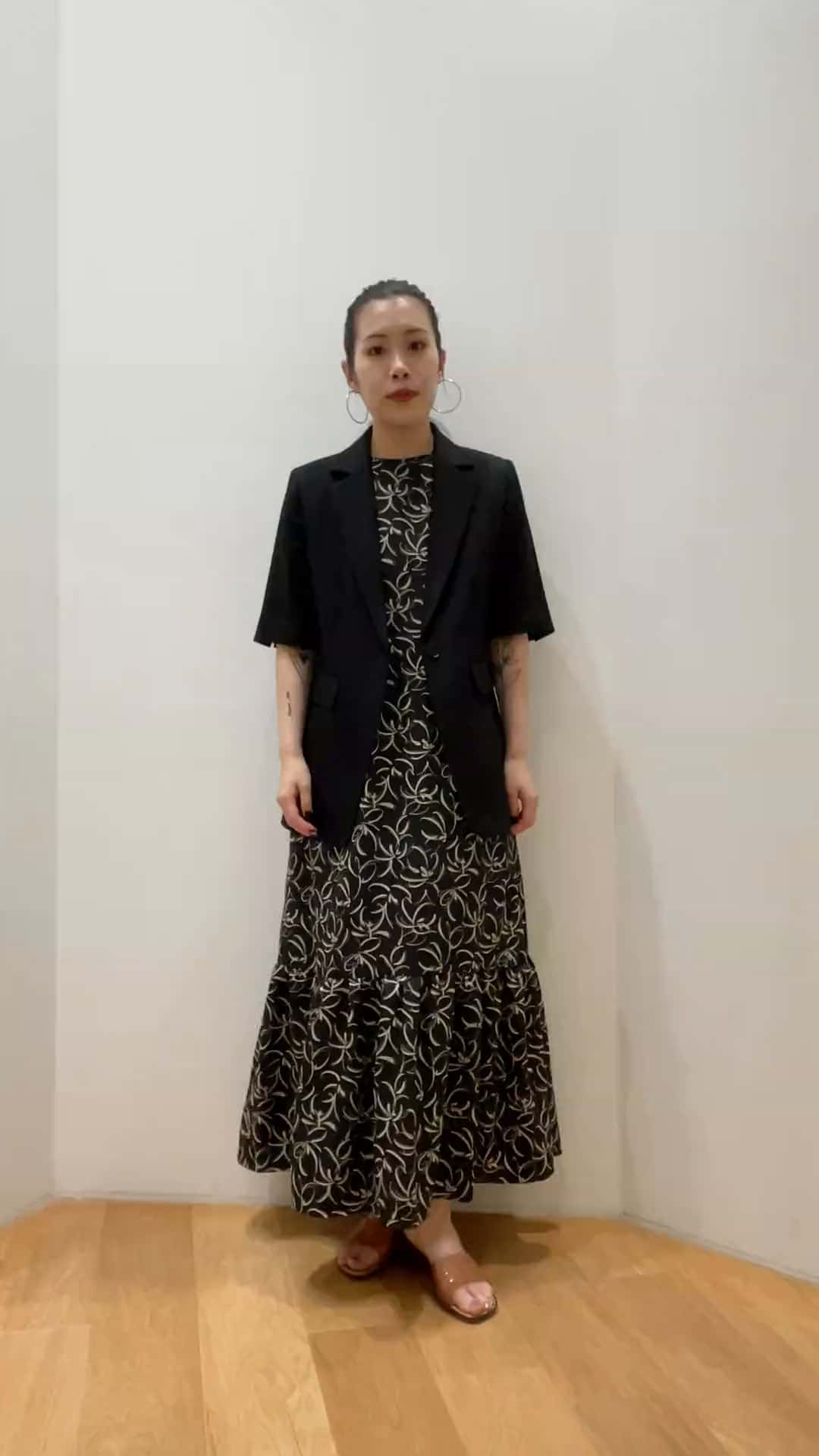 この夏トレンドの5分袖のジャケットを使用したモノトーンスタイル✨ ジャケットですが、清涼感のあるドライタッチな素材なので、これからの時期の羽織りとして活躍してくれそうです。 また、ウエスト周りが程よくシェイプされており、バックスタイルも非常に綺麗です◎ ワンピースは二子玉川店・横浜店・オンライン限定商品です。 モノトーン調のリーフ柄は夏のリラックススタイルもモードに決まる優れもの🌿 着心地も非常に軽く体のラインを拾わないので、夏の暑い時期もストレスフリーでお召しいただけます。 歩くたびに軽やかな揺れ感が出るシルエットの余韻も魅力的です✨ 【着用アイテム】 ジャケット:ESTNATION(36サイズ) ワンピース:ESTNATION(36サイズ) その他スタッフ私物