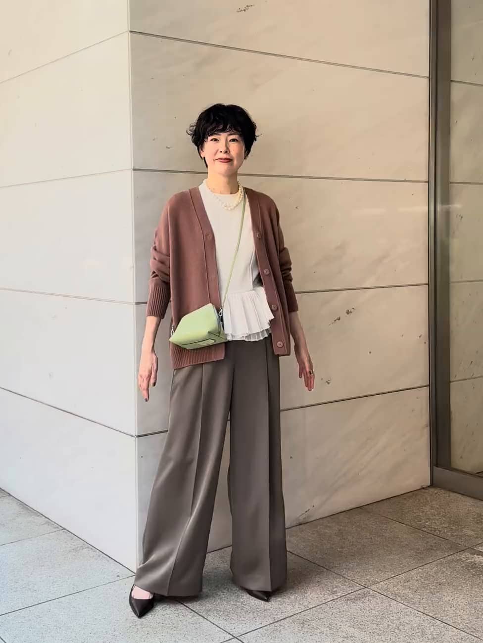 着丈もしっかりあり、楽に羽織れるカーディガンは毎年揃えたくなる人気商品。 スッキリしたV首の仕立てで、お顔周りのもたつきも一切ありません。 【サイズ感】(着用サイズ) カーディガン:ゆったり余裕あり(フリーサイズ) ブラウス:標準(38サイズ) パンツ:標準(38サイズ) パンプス:(37.5サイズ) バッグ:COLUMN ☆Instagramの個人アカウント(@toyo_est)ではリアルバイなども紹介しています。 ☆「TOYO」のLINE公式アカウントがありますので、ご質問などありましたら、お気軽にご連絡ください🩵↓ https://lin.ee/H9aHHO4