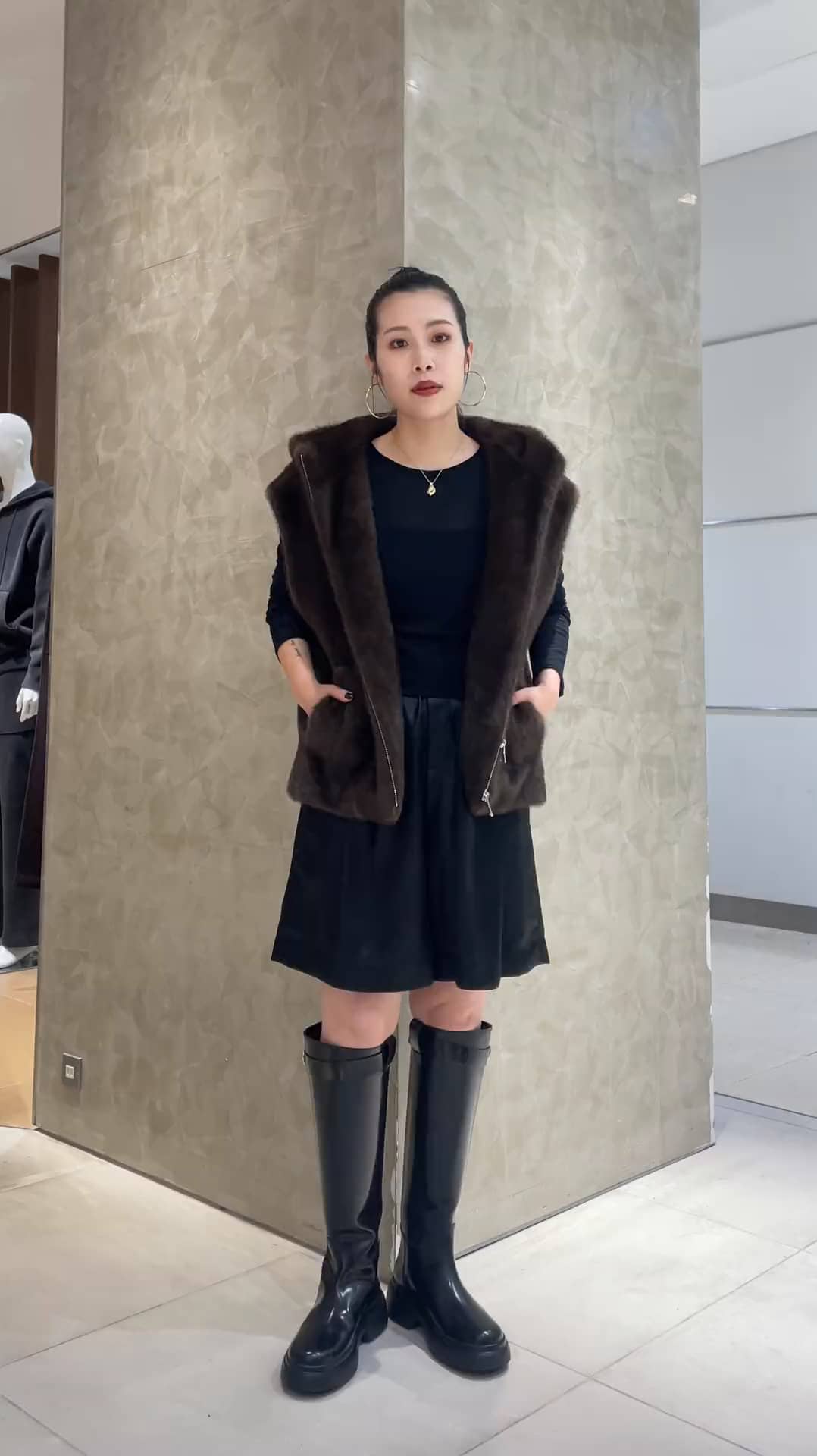 秋〜冬にかけて活躍してくれるファーベストは、リアルファーのようななめらかな毛足が特徴的です✨ シックなダークブラウンカラーはお手持ちのアイテムとも幅広く合わせていただきやすく、トレンド感もプラスしてくれます◎ 今時期はインナーに薄手のカットソーを合わせてヘルシーに、冬は厚手のニット合わせもおすすめです。 COLUMNのサテンハーフパンツは華やかな光沢感があり、ファーやニットなど温かみのあるアイテムと相性が良いです◎ 【着用アイテム】 アウター:ESTNATION(フリーサイズ) トップス:Tu es mon Tresor パンツ:COLUMN(36サイズ) ブーツ:TOD'S その他スタッフ私物