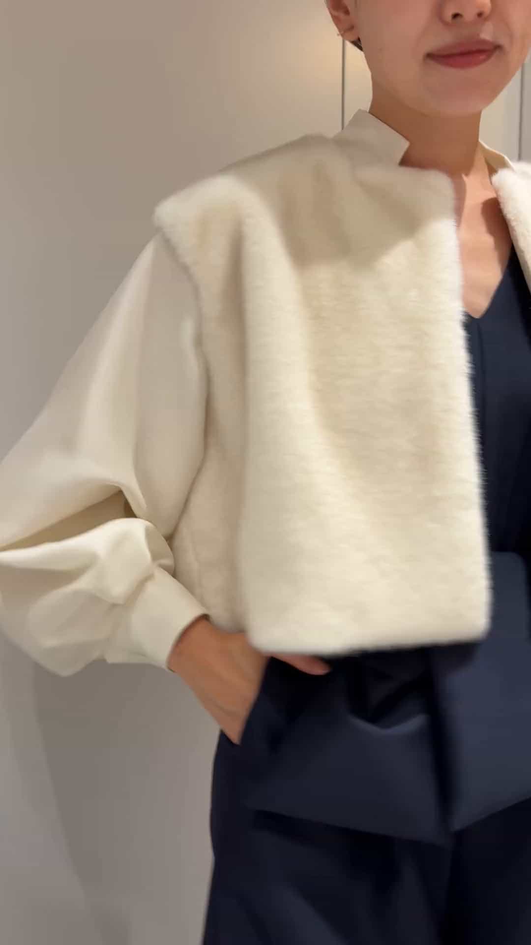 AKIKOOGAWA.のファーブルゾンはミンクの様な肌触りでパーティシーンにも大活躍する一枚です。 袖のところも立体感のあるデザインが女性らしく、光沢感もあるので華やかな一枚です。 またこちらのブルゾンはカジュアルにワイドパンツやスカートと合わせても素敵です。エストネーション別注アイテムです!