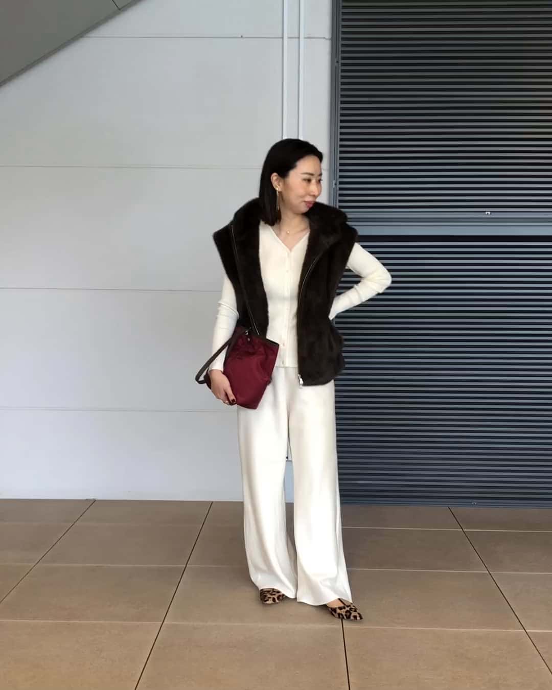 エコファーベストを使ったシンプルコーデ ファーベストは軽く着やすいです! フード付きなので、デニムなどのカジュアルスタイリング合わせもオススメです◎ パンツは毎年人気のバイヤスイージーパンツです。ウエストゴムでストレスフリーに履いていただけます! 一本は必ず持っておきたいパンツです。 足元はレオパード柄のシューズを合わせてトレンドをプラスしました。 ------------------- サイズ・素材など商品詳細については掲載アイテムをご確認ください。 ルミネカードをお持ちのお客様は、ルミネカードWeb決済でのご案内が可能でございます。お電話かLINEからお問い合わせ下さいませ。 エストネーション横浜店 : 045-534-7128 ↓横浜店の公式LINEアカウント <div class="line-it-button" data-lang="ja" data-type="friend" data-env="REAL" data-lineId="@734vgmaf" style="display: none;"></div> <script src="https://www.line-website.com/social-plugins/js/thirdparty/loader.min.js" async="async" defer="defer"></script>
