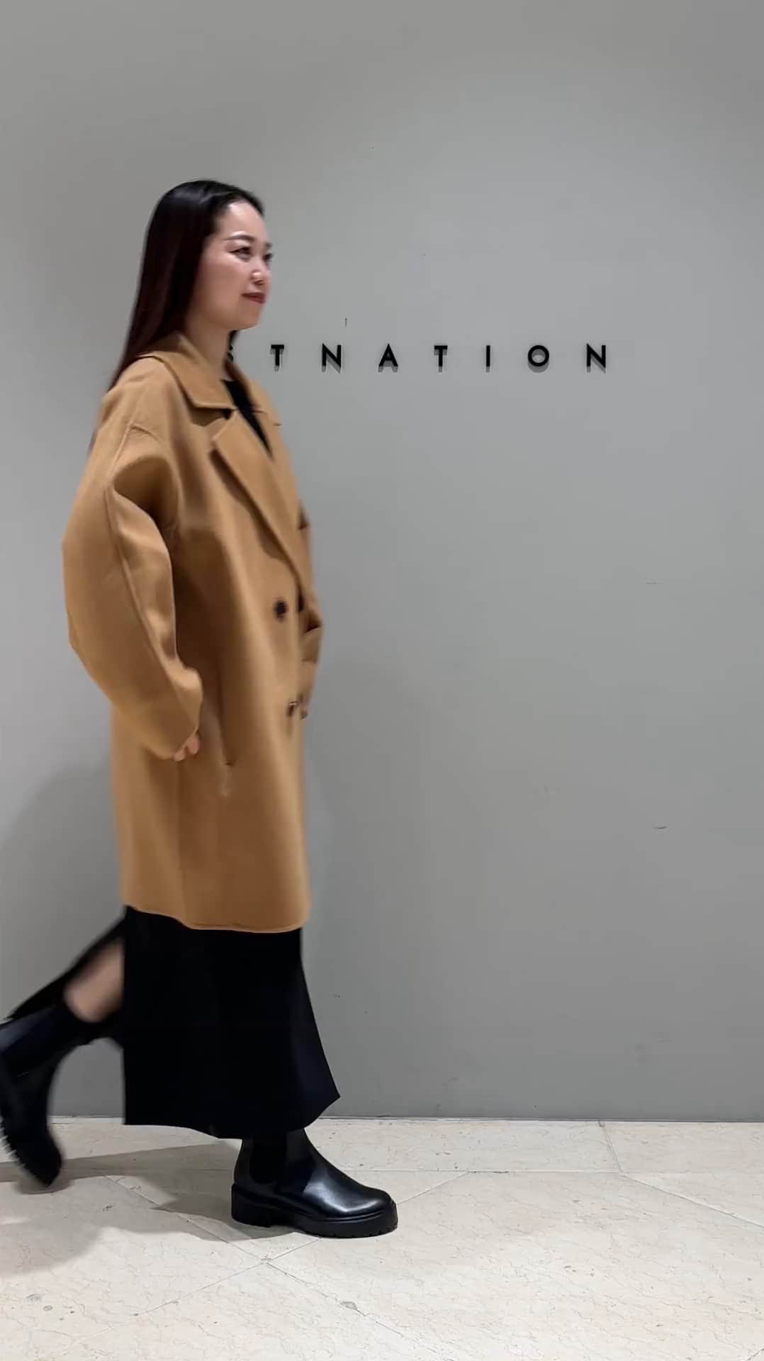 COLUMNのミドル丈コートは、体型も身長も選ばずさらっと羽織れるおすすめアウターです✨ 裏地が付いていないので、軽量でとても軽い羽織心地です。 袖通しの滑りは裏地無しなのでそこそですが、ゆったりとしたアームホールなので問題ないと思います! 緩めのコクーンシルエットになっているので、女性らしすぎずハンサムなスタイルがお好きなお客様にもおすすめです。 ざっくり開いたVネックの胸元は、タートルネックのニットやストール合わせを楽しめそうですね!是非お試しくださいませ✨