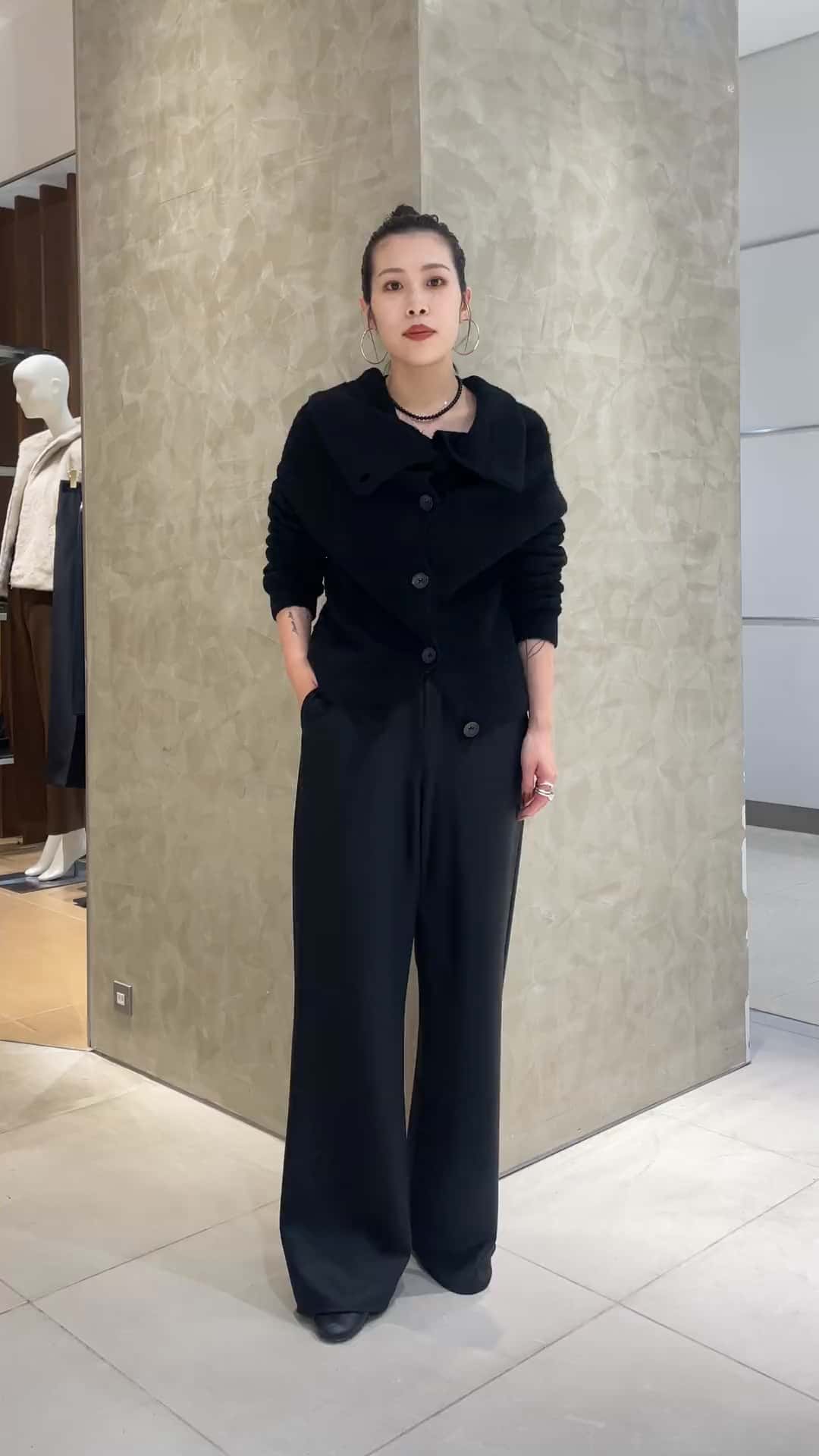 様々なアレンジを楽しむことができるCOLUMNのニット。 ボタンの開け具合で印象が変わるので、シーンや気分に合わせて着回していただけます✨ 軽い着心地と優しい肌触りで素肌で着やすい点も嬉しいです。 銘品のバイヤスパンツは光沢感のあるウールを使用しており、品のある落ち感が特徴的です。 ウエストゴムのイージー仕様ながら、フォーマルシーンにもお召しいただける万能ボトムです。 【着用アイテム】 トップス:COLUMN(フリーサイズ) パンツ:ESTNATION(36サイズ) バッグ:MAISON MARGIELA シューズ:3.1 phillip lim その他スタッフ私物