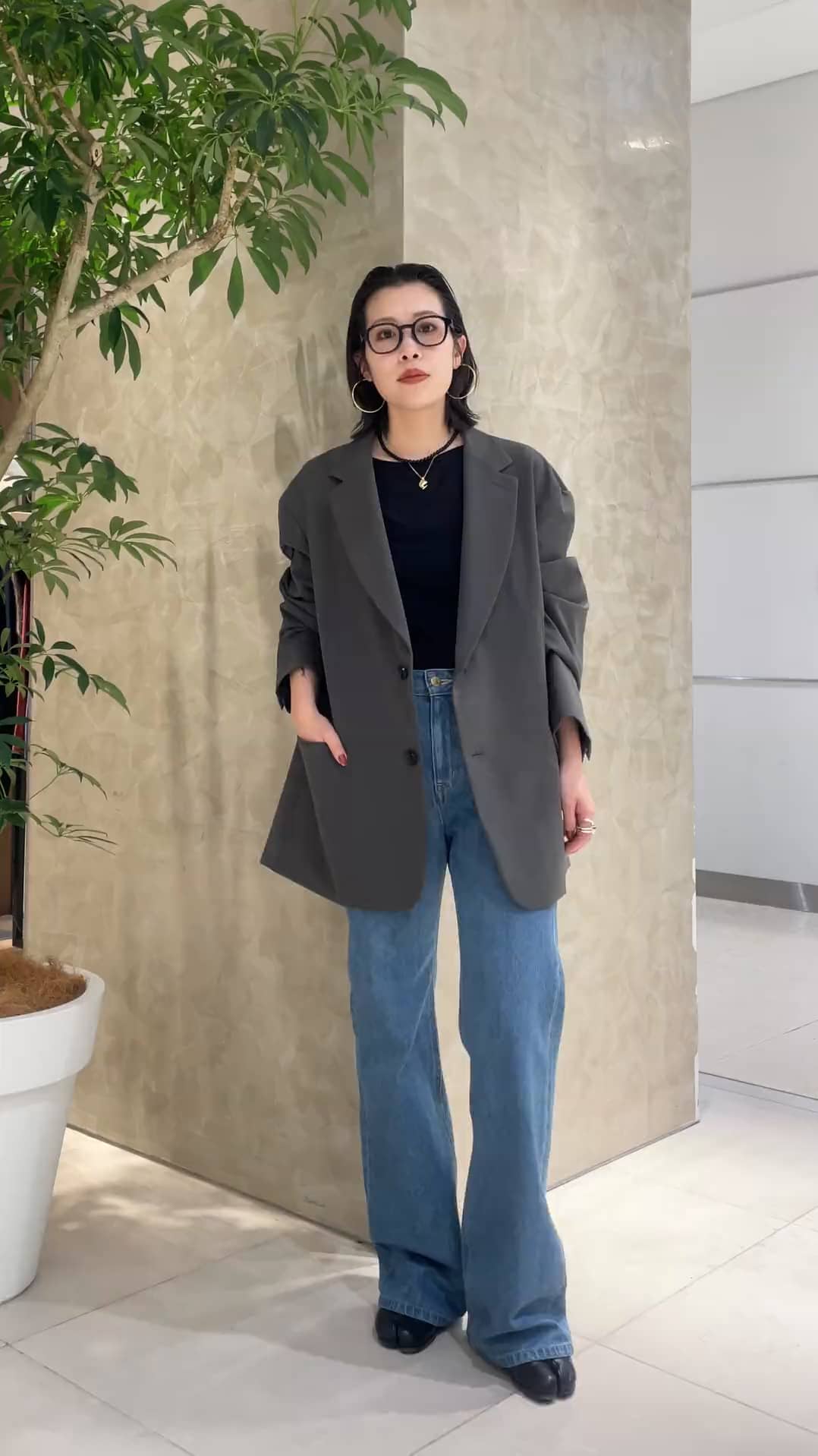 メンズライクなオーバーサイズのUNUSのジャケット。羽織るだけでトレンド感を演出してくれます。 ストレッチが効いていて非常に軽い羽織心地なので、ジャケットでも肩肘張らずにお召しいただけます◎ ジャケットの存在感がしっかりとあるのでインナーはシンプルに。 【着用アイテム】 ジャケット:UNUS(36サイズ) トップス:Tu es mon Tresor パンツ:Tu es mon Tresor(25サイズ) その他スタッフ私物