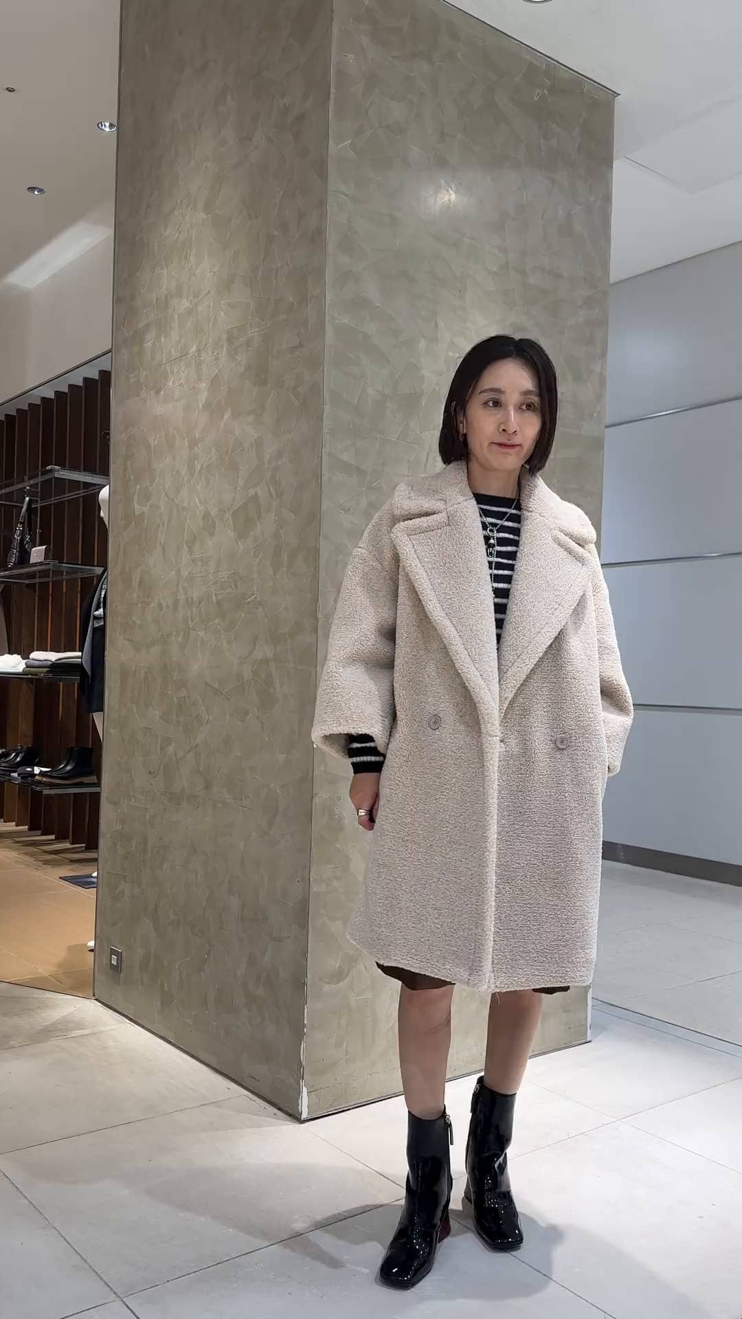 ◆styling ボアコートをカジュアルに合わせました。 ショートボトムのバランスがおすすめポイント。 ◆items HERNOボアコート すごくかるくて、あたたかいボアコートです。少し短めの袖がポイントで、コンパクトな印象で着ていただけます。裏地もあるので、真冬までご着用いただけます。