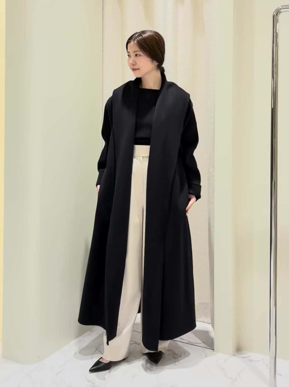THE COLUMNより人気のロング丈コートの登場です。 カシミヤ100%の贅沢な素材を使用し、リラックス感がありながらエレガントなローブスタイルが纏う人の印象をワンランク引き上げてくれます。 ウエストのベルトを外し、ばさっと羽織って頂くのもお勧めな着こなしです。 【着用サイズ】 アウター:36 トップス:F ボトムス:36 身長:160cm