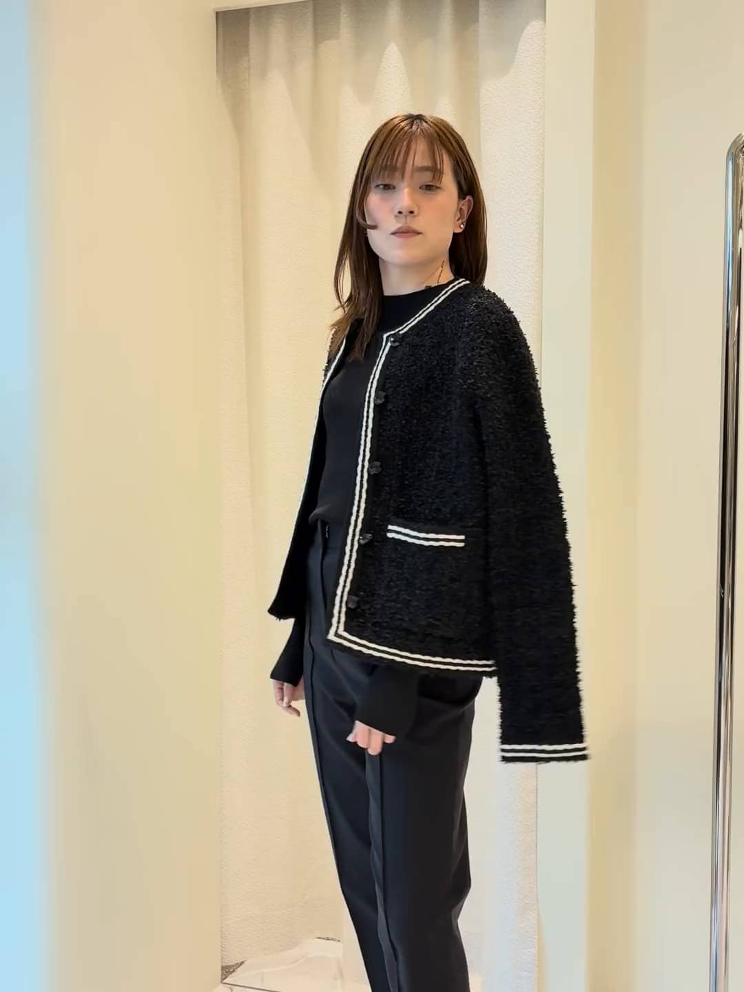 ニットジャケットを使ったスッキリ綺麗めスタイリング ツイードニットジャケットは3種類の糸を使用しており、ラメ感と柔らかさがある素材となっています。 ワントーンやモノトーンでコーディネートしていただいても、ラメ感があるので華やかに見せてくれる1枚です。 COLUMNのスリムパンツはストレッチが効いていて着心地がいいです。 裾内に入ったベントによる足首見せで、抜け感を出す事が可能になっています。 【着用サイズ】 ジャケット:F トップス:F パンツ:36 身長:163 アッセンブル エストネーション ニュウマン高輪店 〒108-0074 東京都港区高輪2丁目21−2ニュウマン高輪 South 3F 11:00〜20:00 Tel.03-6277-4155(売場直通) 【Instagram】 https://www.instagram.com/assembleestnation/