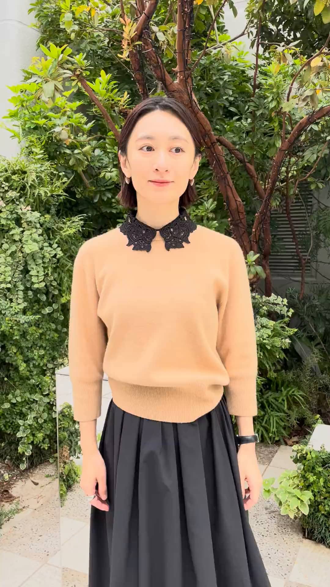 ◆styling ベージュ×ブラックのツートンは、ベージュ系が苦手な方でも取り入れやすい合わせです。 年末年始の人と会うシーンにオススメです! ◆items ESTATION レース襟ニット 取り外しのできる襟なので、シンプルな丸首ニットとしても活躍します。