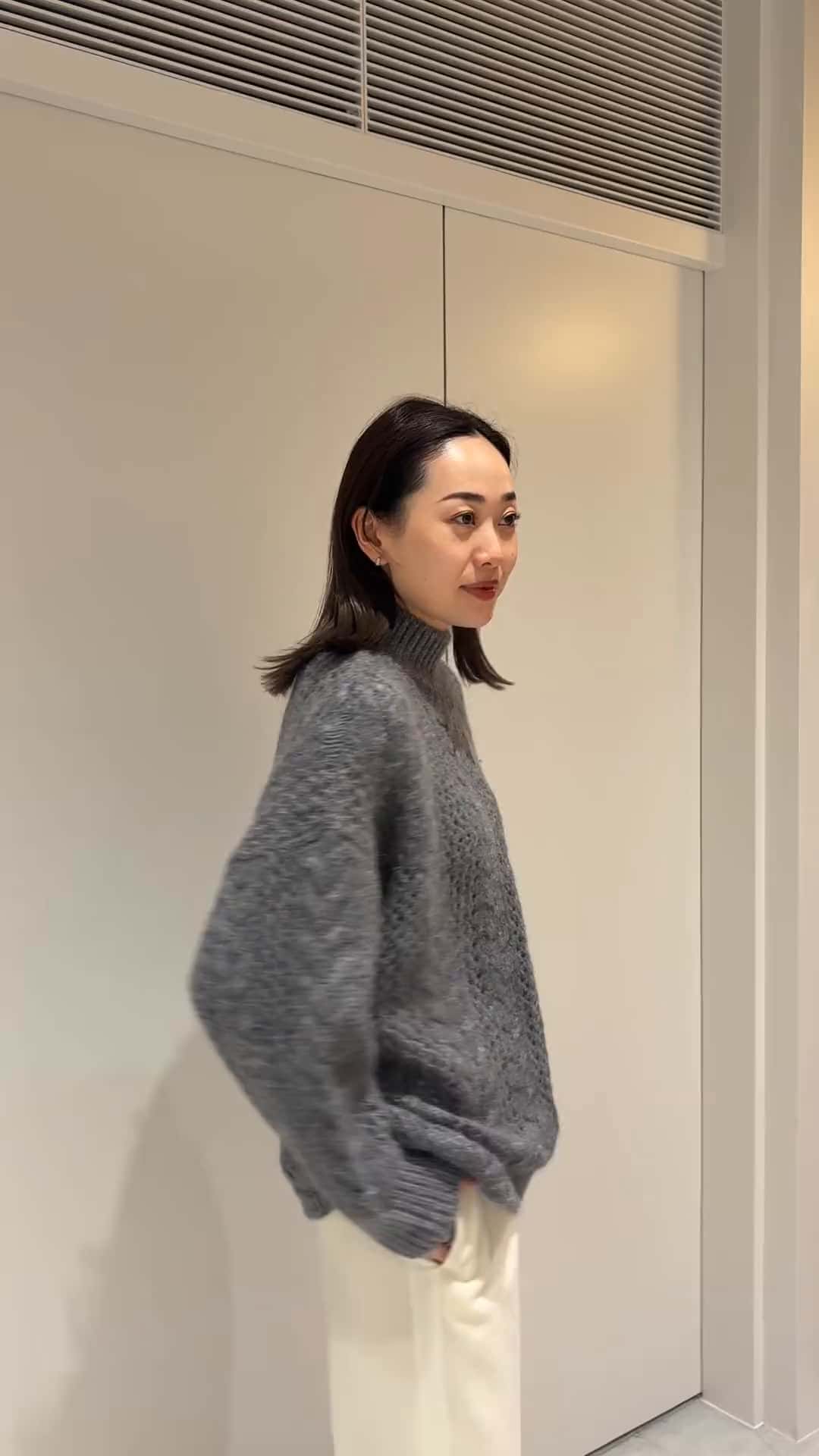 COLUMNのグレーのニットにラインが入ったウールパンツをスタイリングしました。 ウールパンツはウエストゴムでスッキリと見え、ウール素材なのでとても暖かくおすすめです。 また裏地も付いているのでインナーが透けることもなく安心して着用いただけます。 同素材のトップスもあり、セットアップでもバラバラでも使い勝手良く今年の冬おすすめのアイテムです。