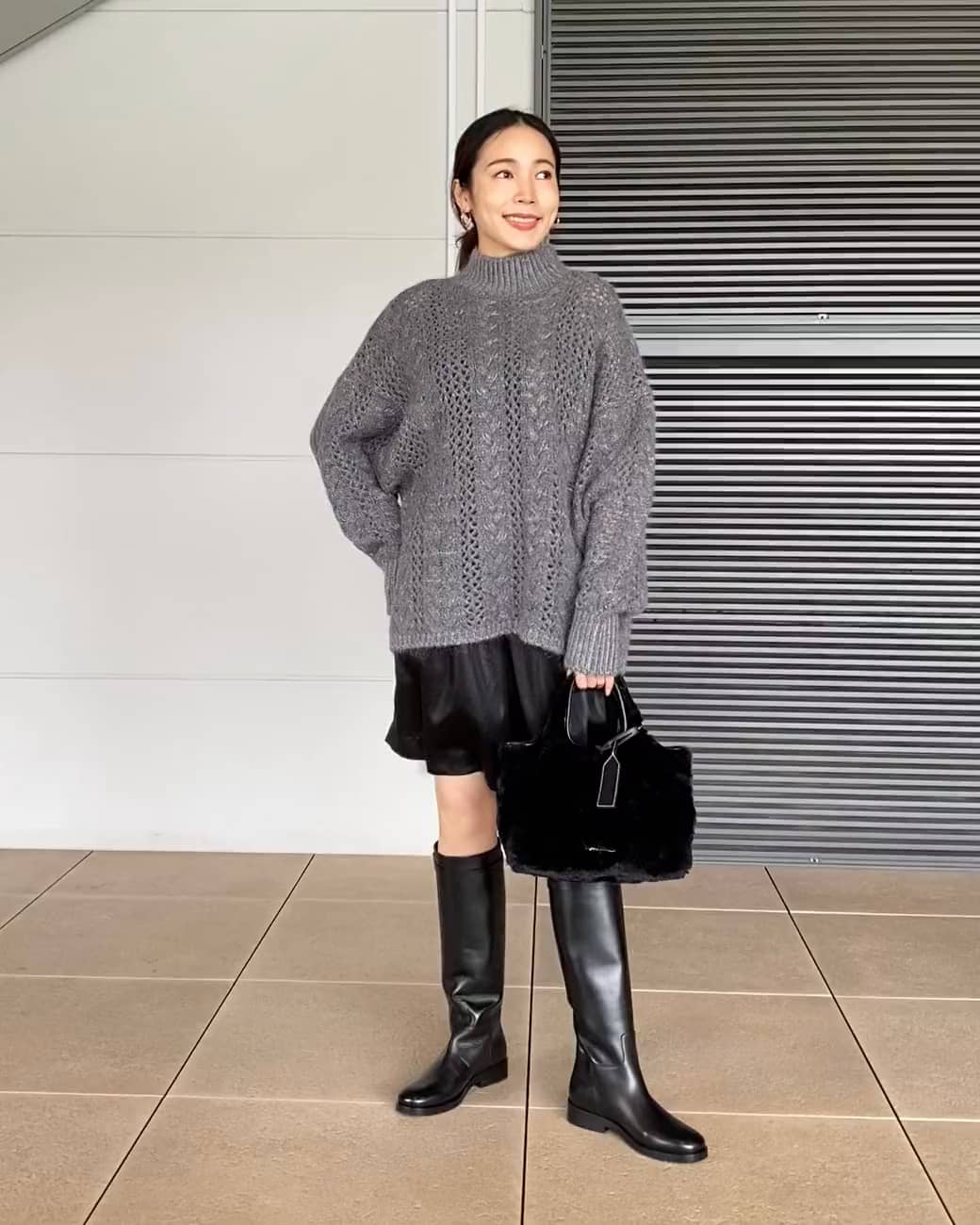 ケーブルシアーニットは、 ラクーン×ウールとモヘア×ウールの異なる撚糸を組み合わせた、 軽く柔らかなバランス素材を使用🧶 透け感のあるローゲージ編みとメッシュの編み地が女性らしく、1枚で着映えします✨ 今回はショートパンツにロングブーツで合わせて、お出かけにぴったりなコーディネートに仕上げました。 ---------- サイズ・素材など商品詳細については掲載アイテムをご確認ください。 ルミネカードをお持ちのお客様は、ルミネカードWeb決済でのご案内が可能でございます。お電話かLINEからお問い合わせ下さいませ。 エストネーション横浜店 : 045-534-7128