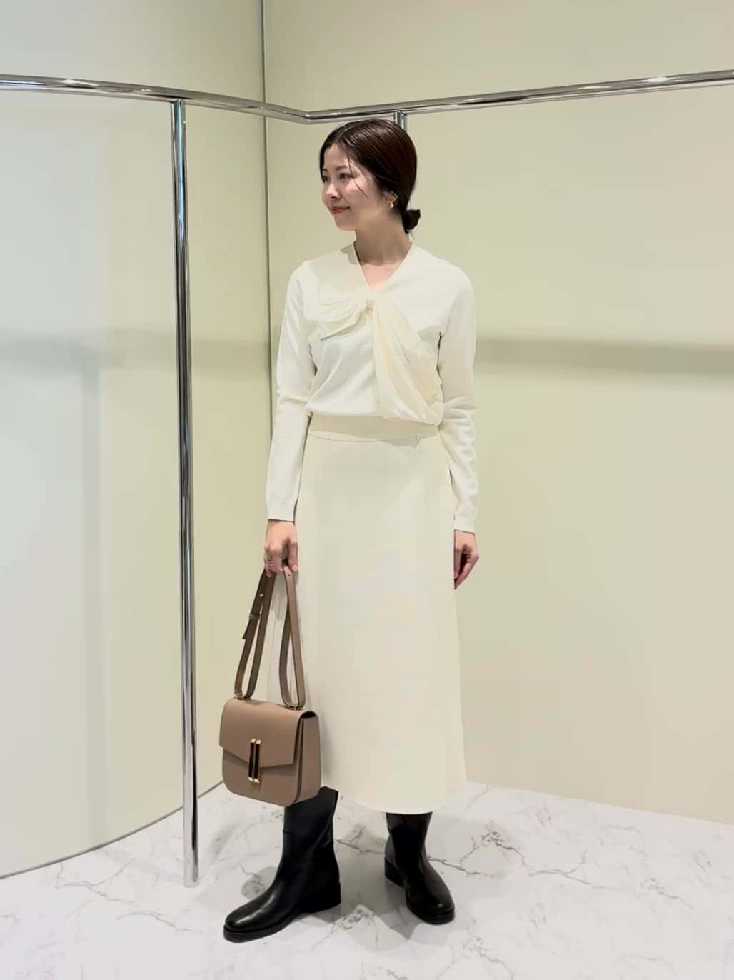 リボンモチーフが印象的なニットのセットアップ。 着るだけで華やかになり、コンパクトなサイズ感がジャケットのインナーにもバランス良く合わせられます。 素材は合繊素材でさらっとした肌触りがシーズン長く着て頂け、着回しもして頂きやすいです。 【着用サイズ】 トップス:F ボトムス:F 身長:160cm -------- 気になるアイテムや詳細はお気軽にニュウマン高輪店まで問い合わせ下さい。 アッセンブルエストネーション ニュウマン高輪店 ニュウマン高輪 South 3F 営業時間 11:00-20:00 TEL 03-6277-4155 ROUTE ▽▽▽ JR高輪ゲートウェイ駅南口改札より出て正面の左の棟がSouth棟になります。 BLUE BOTTOLE COFFEE横のエスカレーターから3階に上がって頂き、左側に曲がって頂くとお店がございます。