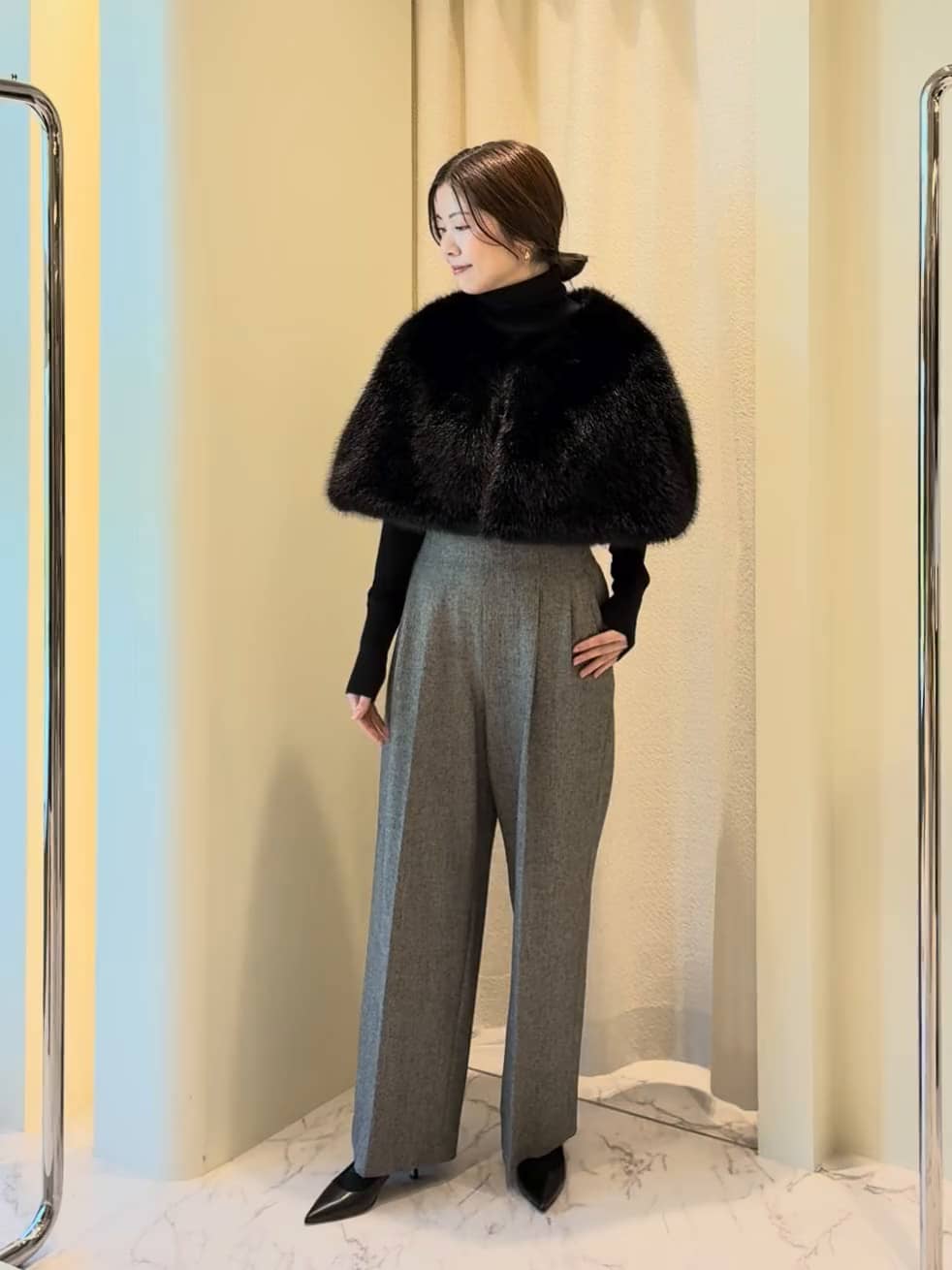 ESTNATIONのエコファーケープを使ったホリデーやお出かけに向けたコーディネートのご紹介です。 シンプルなアイテムの組み合わせながらミックス感のある糸を使用したツィード素材のパンツが楽着ながら、上質さや品のあるスタイルを演出して頂けます。 ウエスト位置も高めになっているのでスタイルアップ見えするこの冬にお勧めのボトムです。 【着用サイズ】 トップス:F ボトムス:36 身長:160cm -------- 気になるアイテムや詳細はお気軽にニュウマン高輪店まで問い合わせ下さい。 アッセンブルエストネーション ニュウマン高輪店 ニュウマン高輪 South 3F 営業時間 11:00-20:00 TEL 03-6277-4155 ▽ROUTE▽ JR高輪ゲートウェイ駅南口改札より出て正面の左の棟がSouth棟になります。 BLUE BOTTOLE COFFEE横のエスカレーターから3階に上がって頂き、左側に曲がって頂くとお店がございます。
