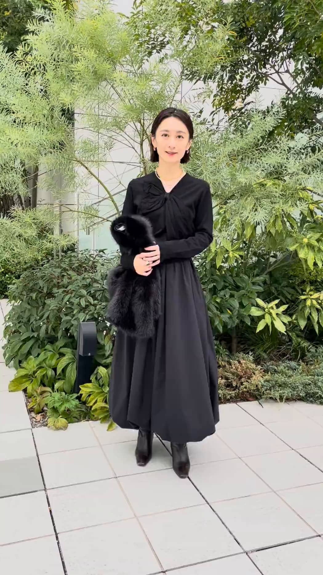◆styling 年末のパーティーやお呼ばれなどでも着れて、合わせ次第でデイリーでも着れるアイテム同士で組み合わせました。 ◆items ESTNATION フェイクファーケープ ミンク調の高級感のあるフェイクファーのケープは、アウターとしても華やぎとしても活躍します。
