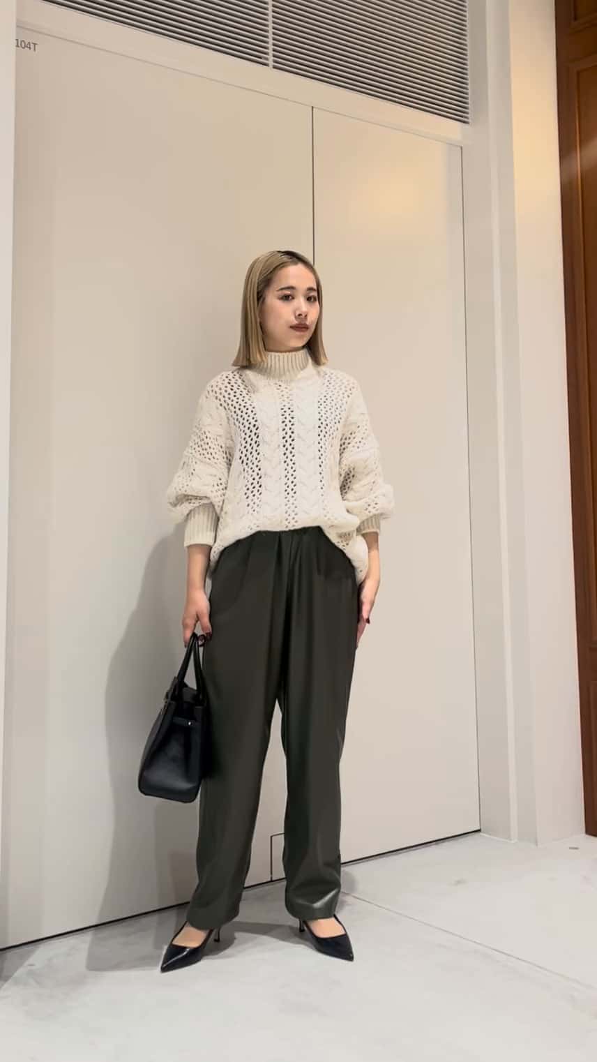 店頭でも大人気のニットトップスは豊富なカラー展開があるなかで今季はホワイトをチョイスしてみました。 柔らかい印象に仕上げてくれるニットにあえてレザーパンツを合わせてスタイリングしました✨ レザーパンツとパンプスが甘くなりすぎずマニッシュな印象に仕上げてくれるのでおすすめです! ASSEMBLEESTNATION GINZASIX店 TEL:03-6264-5553 営業時間:10:30-20:30