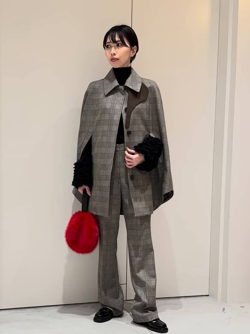 『クラシック×モード』 ニットと千鳥柄のセットアップは、どちらもESSENCE OF LUXURYのもの。 マントのように広がるケープジャケットが存在感たっぷりで、クラシックな千鳥柄にモードな雰囲気をプラスしてくれます。 タートルニットは袖の“もこもこデザイン”がポイントで、取り外しも可能💭 ハンサムなセットアップに、程よい立体感と遊び心を添えてくれます🕺🏻 シックなモノトーンスタイルに、赤のファーバッグを差し色にして華やかさをプラス❤️ 今時季のホリデーコーデにもぴったりな、印象に残るスタイリングです🎄🎁 店頭にてご覧いただけます。お気軽にお立ち寄りくださいませ。 ASSEMBLEESTNATION GINZASIX店 TEL:03-6264-5553 営業時間:10:30-20:30