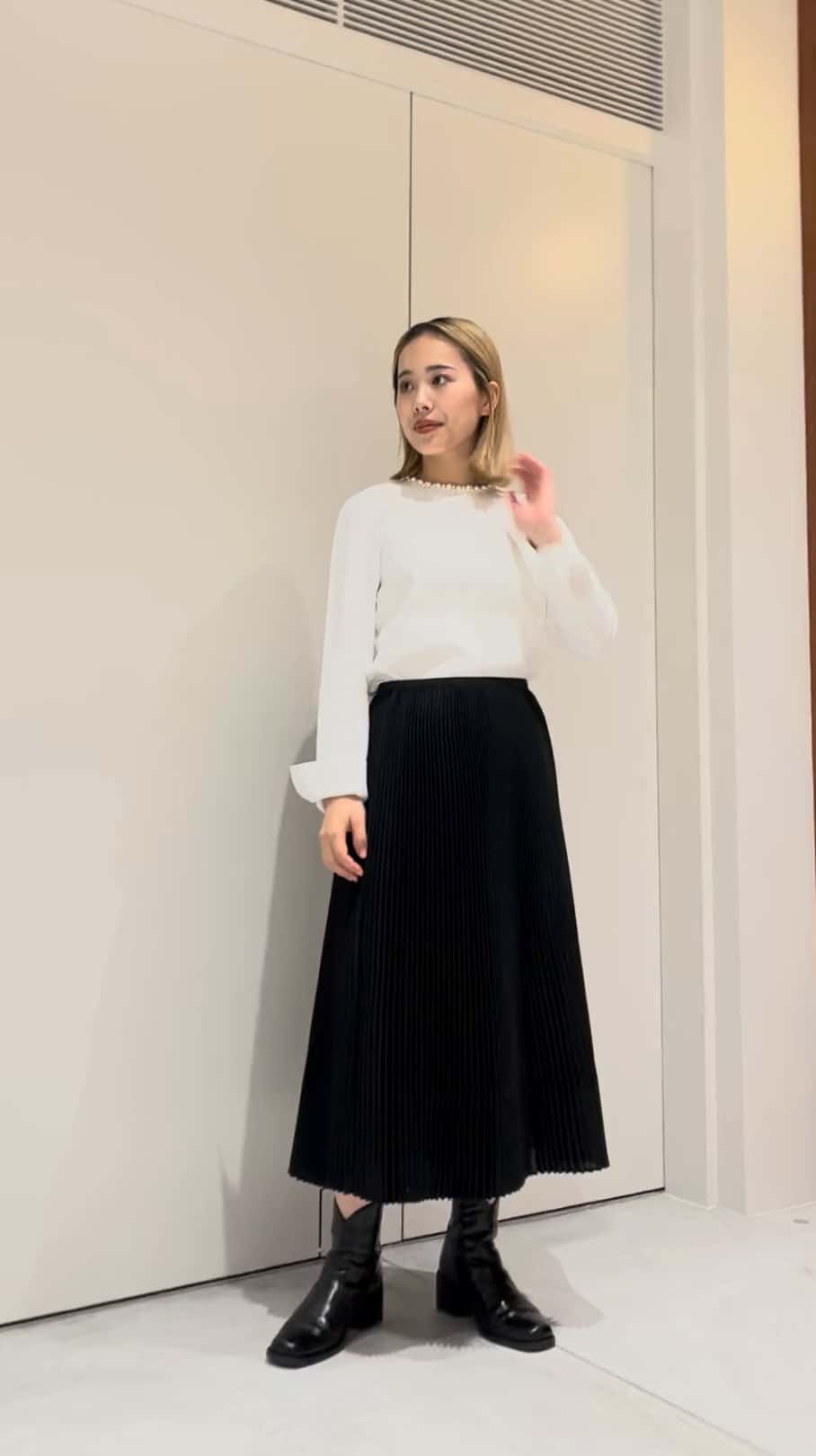 パールのトップスがアクセサリーいらずでスタイリングを決めてくれる万能トップス◎ スカート合わせで華やかなシーンから、デニム合わせでデイリーにもご着用いただけると思います✨ 歩く度に綺麗なシルエットを演出してくれるプリーツスカートは座り皺なども気にせず着られるのでオフィスでもご活躍いただけそうです! ASSEMBLEESTNATION GINZASIX店 TEL:03-6264-5553 営業時間:10:30-20:30