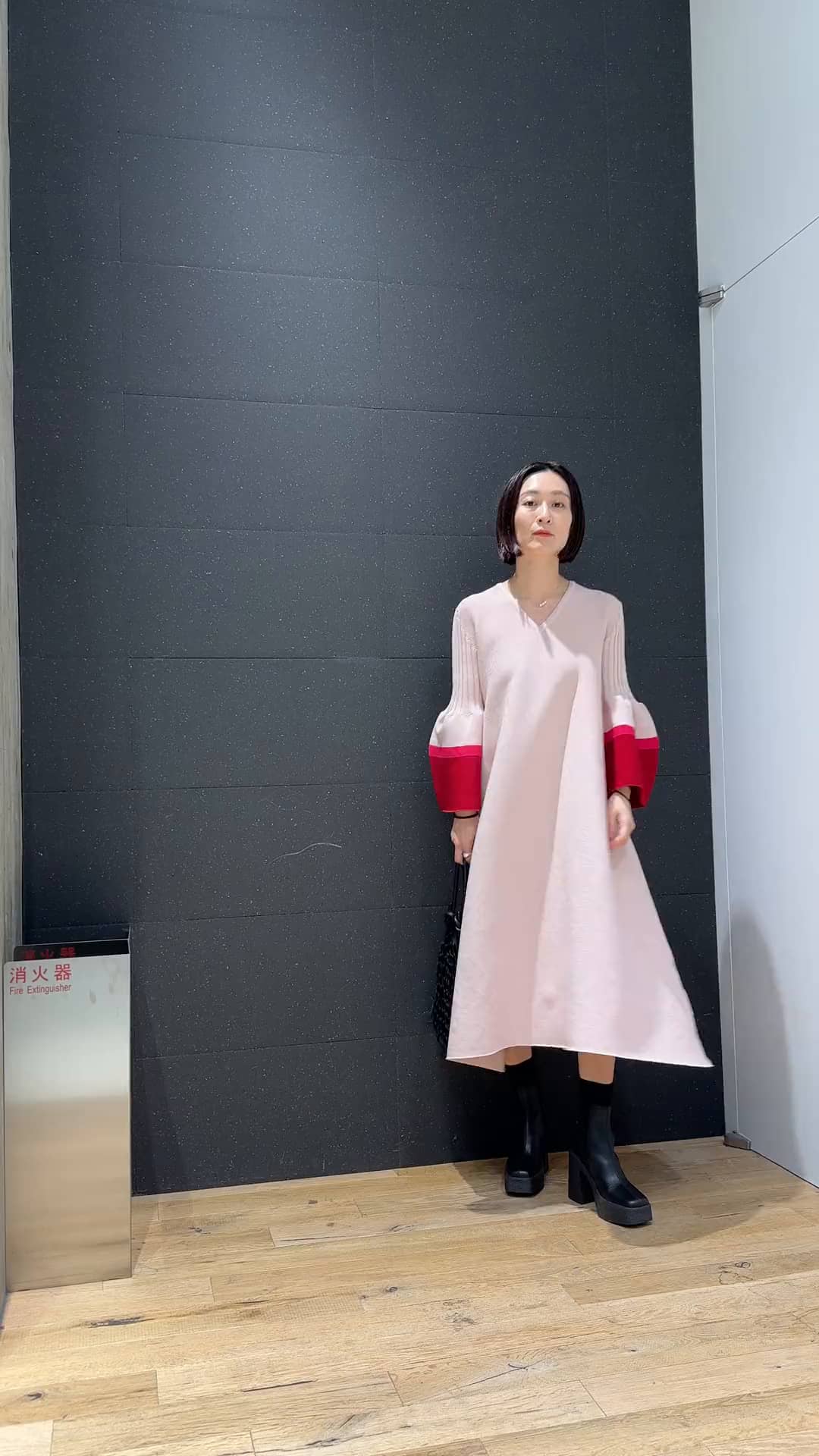 ◆styling 華やかだけど頑張りすぎないスタイルです。 足元をブーツで締めると、ピンクのワンピースもスタイリッシュになるのでおすすめです。 ◆items CFCLワンピース かぶりで着れる楽ちんワンピースですが、シルエットが立体的きちんと感があります。 締め付け感もない着心地なので、デイリーにも着たい優秀アイテム。