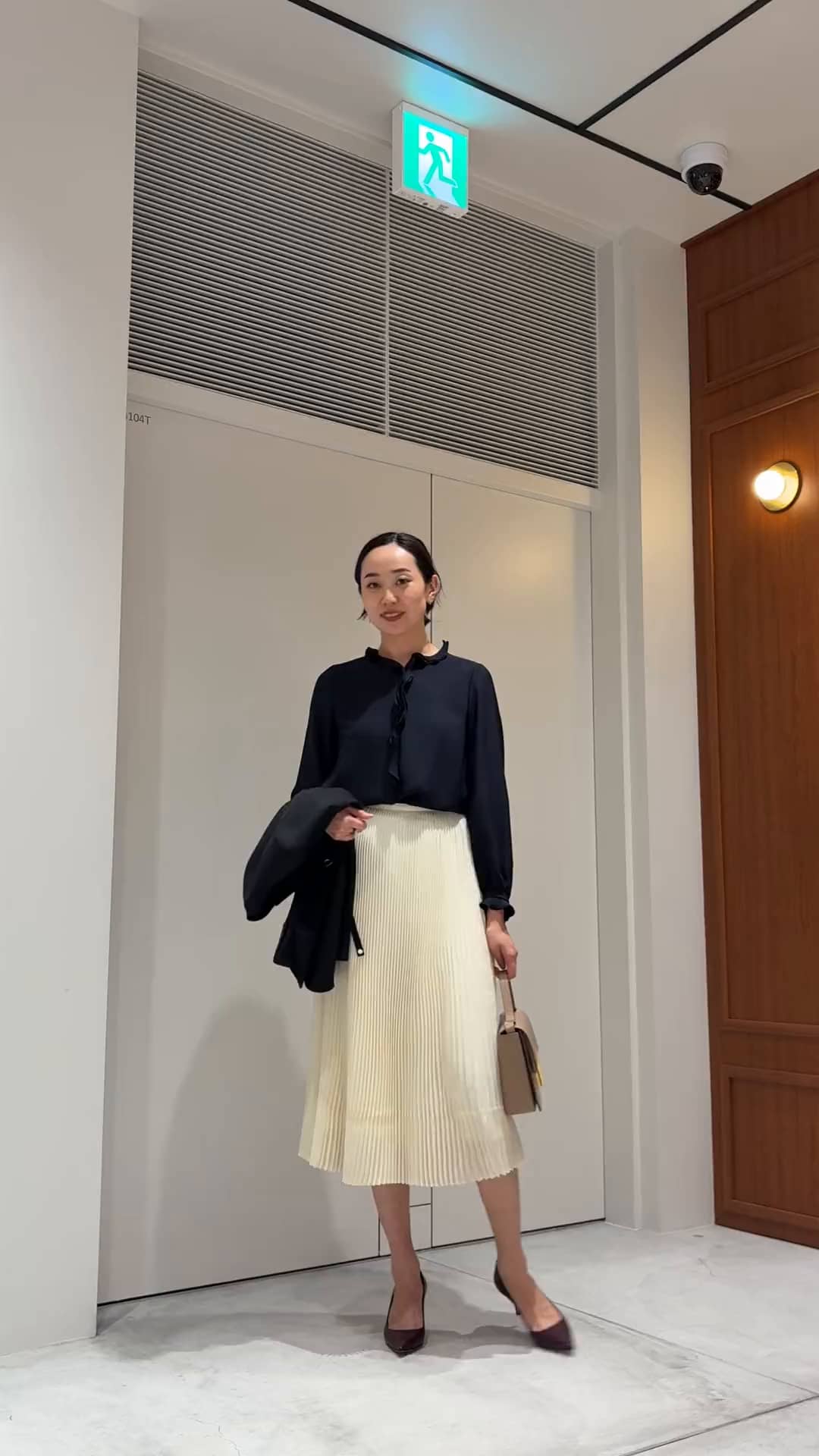 大人気のリングジャケットが入荷いたしました。こちらのジャケットは同素材でワイドパンツのセットアップですが、今回はプリーツスカートと合わせてフェミニンなスタイリングにしてみました。 またリングジャケットと相性のいいフリルブラウスがさりげなく見えてアクセントになります。 スカートは少しゆとりのあるサイズ感で締め付け感もなく楽に履けるのも嬉しいポイントです☺️