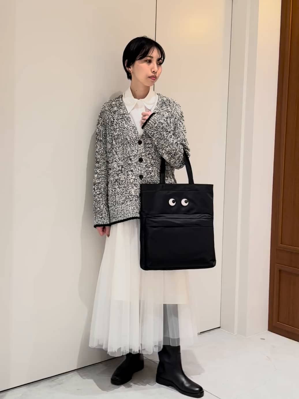『モノトーンコーデ』 こちらのマーブル調デザインのカーディガンは エストネーションオリジナルのもの。 モノトーン配色ながらも奥行きのある柄感で、 羽織るだけでスタイリングに存在感をプラスしてくれます。 コンパクトすぎない程よいサイズ感なので、 きちんと感がありつつもリラックスした印象に✨ ボトムには白のチュールスカートを合わせ、軽やかさと女性らしさをプラス。 冬の重くなりがちなスタイリングを程よく中和し、春先まで長く楽しめるバランスにしました。 手洗い可能なのも嬉しいです🧺🫧 足元はロングブーツで全体を引き締めています。 インナーに白を合わせることで、顔まわりも明るく見え、季節の変わり目に取り入れやすいコーディネートです。 冬から春先まで活躍する、軽やかさと上品さを兼ね備えたスタイルとしておすすめです❄️🌸 店頭でもご覧いただけます。 お気軽にお立ち寄りくださいませ☆ ASSEMBLEESTNATION GINZASIX店 TEL:03-6264-5553 営業時間:10:30-20:30