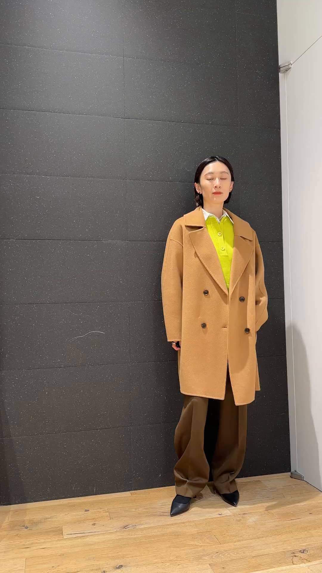 ◆styling ブラウンとイエローのカラーリングがオススメ。シャツを入れることで、オシャレなオフィススタイルとしても。 ◆item COLUMNコート ビッグシルエットのダブルフェイスコート。 軽くて羽織りやすい素材です!