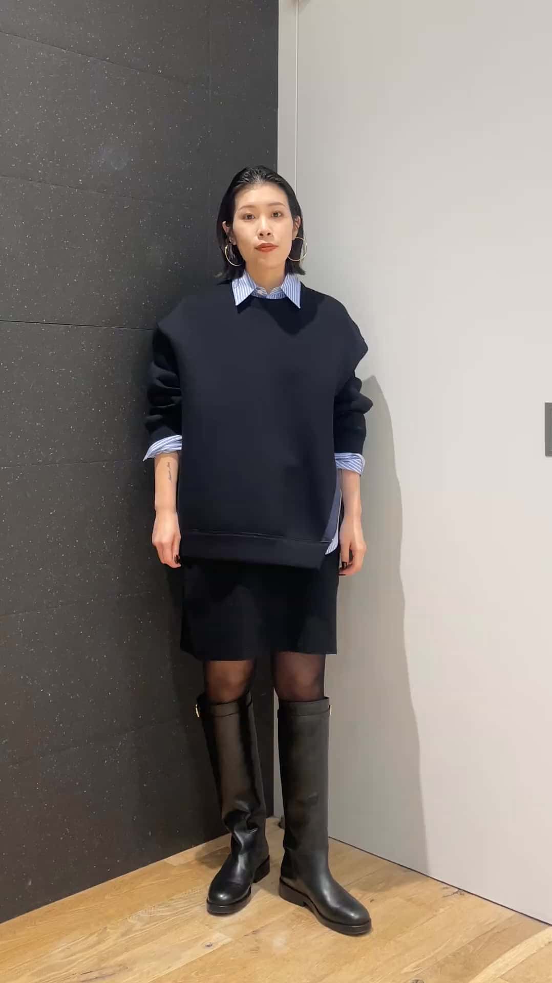 ダンボール素材ならではの丸みのあるフォルムが特徴的なプルオーバー。 モノトーンでまとめてカジュアルすぎないモードなスタイリングに。 プルオーバーは左脇のZIPを開けてシルエットの変化やレイヤードを楽しんでいただけます。 【着用アイテム】 トップス:ESTNATION(フリーサイズ) シャツ:ESTNATION(36サイズ) スカート:COLUMN(フリーサイズ) シューズ:ESTNATION その他スタッフ私物