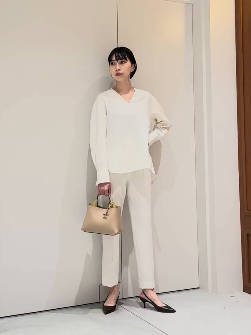 『オケージョンスタイル』 上品なホワイトでまとめた、オケージョンスタイル🤍 胸元は開きすぎないVネックデザインで、顔まわりをすっきりと見せながらも、きちんと感のある印象に😌 少し肉厚の生地感のため、ホワイトでも透け感が気になりにくいのが嬉しいポイント💡 一枚で安心して着用いただけます。 ※インナーに黒いキャミソールを着ています 後ろ見頃の裾はやや長めのデザインで、さりげなくヒップラインをカバー。 体型を選ばず、上品に着こなせるシルエットです。 卒業式・入学式をはじめ、歓送迎会や謝恩会など、 さまざまなオケージョンシーンで活躍する、頼れるコーディネートです。 *トップスはホワイト・ネイビーの 2サイズ2色展開 *パンツはホワイト・ブラック・ネイビーの 3サイズ3色展開 店頭にてご覧いただけます。 お気軽にお立ち寄りくださいませ☆ ASSEMBLEESTNATION GINZASIX店 TEL:03-6264-5553 営業時間:10:30-20:30