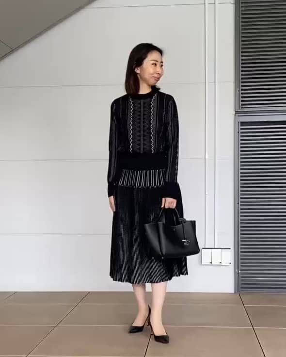 オリジナルのジャガード柄を使ったモノトーンコーデ 柄ですが、落ち着いた色味なので挑戦しやすいです◎ トップスはタイトめなのでワイドパンツやボリュームのあるスカートとの合わせがオススメ。 スカートはウエスト部分が太いゴムの仕様になっているので細見えします✨ セットアップでも別々でもコーディネートを楽しめるアイテムです。 ------------------- サイズ・素材など商品詳細については掲載アイテムをご確認ください。 ルミネカードをお持ちのお客様は、ルミネカードWeb決済でのご案内が可能でございます。お電話かLINEからお問い合わせ下さいませ。 エストネーション横浜店 : 045-534-7128 ↓横浜店の公式LINEアカウント <div class="line-it-button" data-lang="ja" data-type="friend" data-env="REAL" data-lineId="@734vgmaf" style="display: none;"></div> <script src="https://www.line-website.com/social-plugins/js/thirdparty/loader.min.js" async="async" defer="defer"></script>