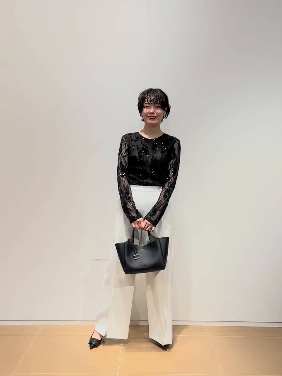 テンションが上がるキラキラトップス✨ 伸縮性もあり着心地良いです。 腕の部分は透け感があります。 華やかなシーンだけでなく、普段使いでデニムスタイルにもオススメしたいです。 【サイズ感】(着用サイズ) トップス:標準(Sサイズ) パンツ:標準(38サイズ) パンプス:(37.5サイズ) バッグ: TOD'S ☆Instagramの個人アカウント(@toyo_est)ではリアルバイなども紹介しています。 ☆「TOYO」のLINE公式アカウントがありますので、ご質問などありましたら、お気軽にご連絡ください🩵↓ https://lin.ee/H9aHHO4