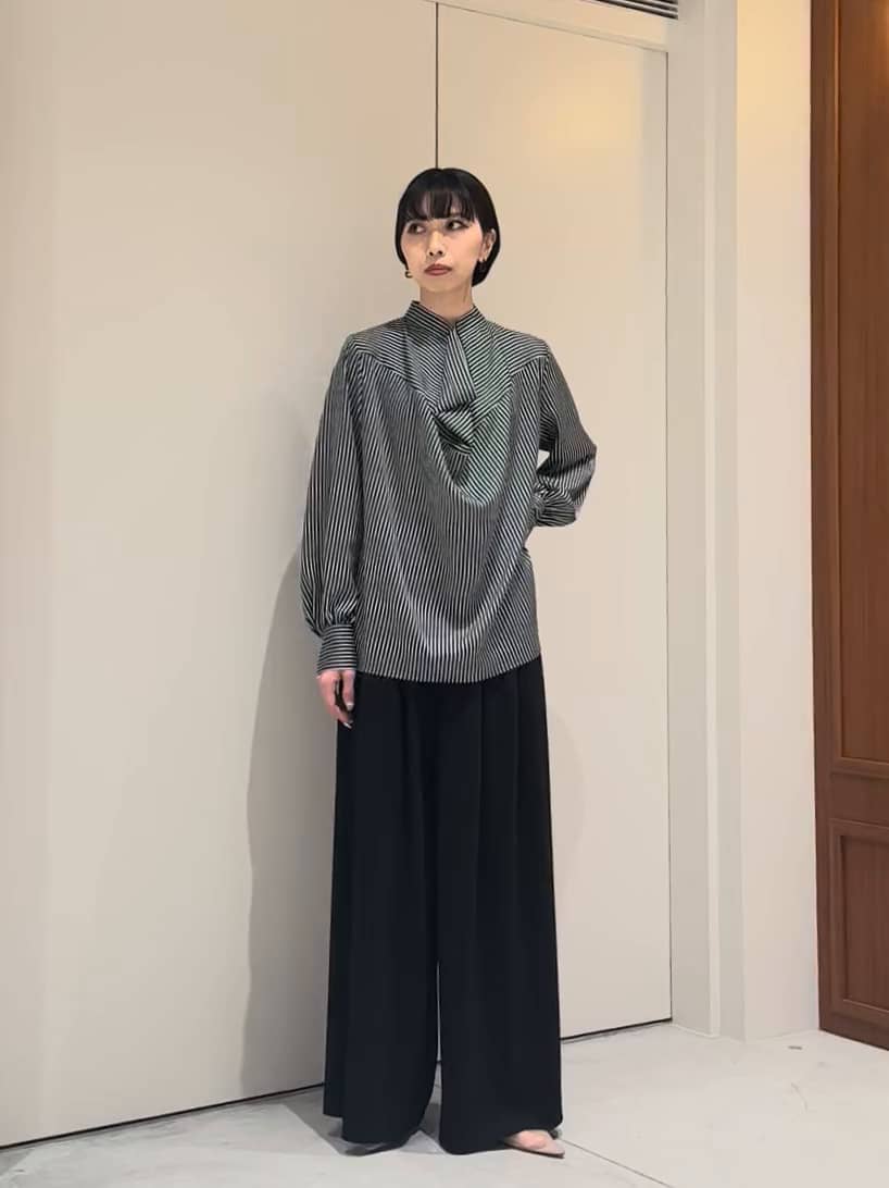 ESTNATION THE FIRSTの新作 を着てみました! ストライプブラウス×ドレープワイドパンツ サテン素材のストライプブラウスは、 首元のドレープデザインが印象的。 前ボタン仕様でさっと着られるイージーさも 嬉しいポイントです💡 縦ラインを強調するストライプ柄は、 自然とスタイルアップ効果も◎ インナーの透け感も気にせず着用いただけます。 合わせたパンツは、袴のような落ち感が魅力の ドレープワイドシルエット。 内側には短めのペチパンツ付きで、 春先から夏場まで涼しく快適に🍃 裾をインすればきちんと感のある クラシックな印象に♠︎ 裾をアウトして着れば、 モードな雰囲気に仕上がります♣︎ 店頭にてご覧いただけます。 お気軽にお立ち寄りくださいませ☆ ASSEMBLEESTNATION GINZASIX店 TEL:03-6264-5553 営業時間:10:30-20:30