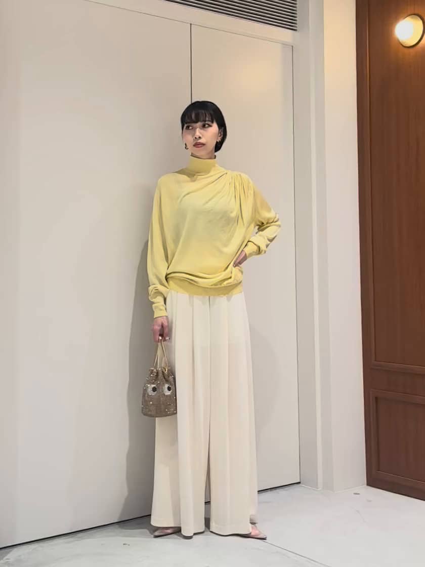 ESTNATION THE FIRSTの新作を 着てみました! シルクプルオーバー×ドレープワイドパンツ 着ているだけで春をまとえる、 軽やかなカラーリングのコーディネート☘️🌼 透け感のあるシルク素材のニットプルオーバーは、上品な光沢と落ち感が魅力的✨ アシンメトリーなドレープデザインが表情を生み、程よくゆとりのあるシルエットで締め付け感なく着用いただけます。 シルク素材ながら手洗い可能なのも嬉しいポイント💡 パンツは、前回着用のブラックと同型のホワイトカラー。 袴のような美しいドレープが動くたびに揺れ、 軽やかな印象に。 ペチパンツはあえて透け感を活かした仕様で、 春夏らしい抜け感を楽しめます🫧 クリーンで女性らしく、それでいて肩の力を抜いて着られる春スタイルです🌸 店頭にてご覧いただけます。 お気軽にお立ち寄りくださいませ☆ ASSEMBLEESTNATION GINZASIX店 TEL:03-6264-5553 営業時間:10:30-20:30