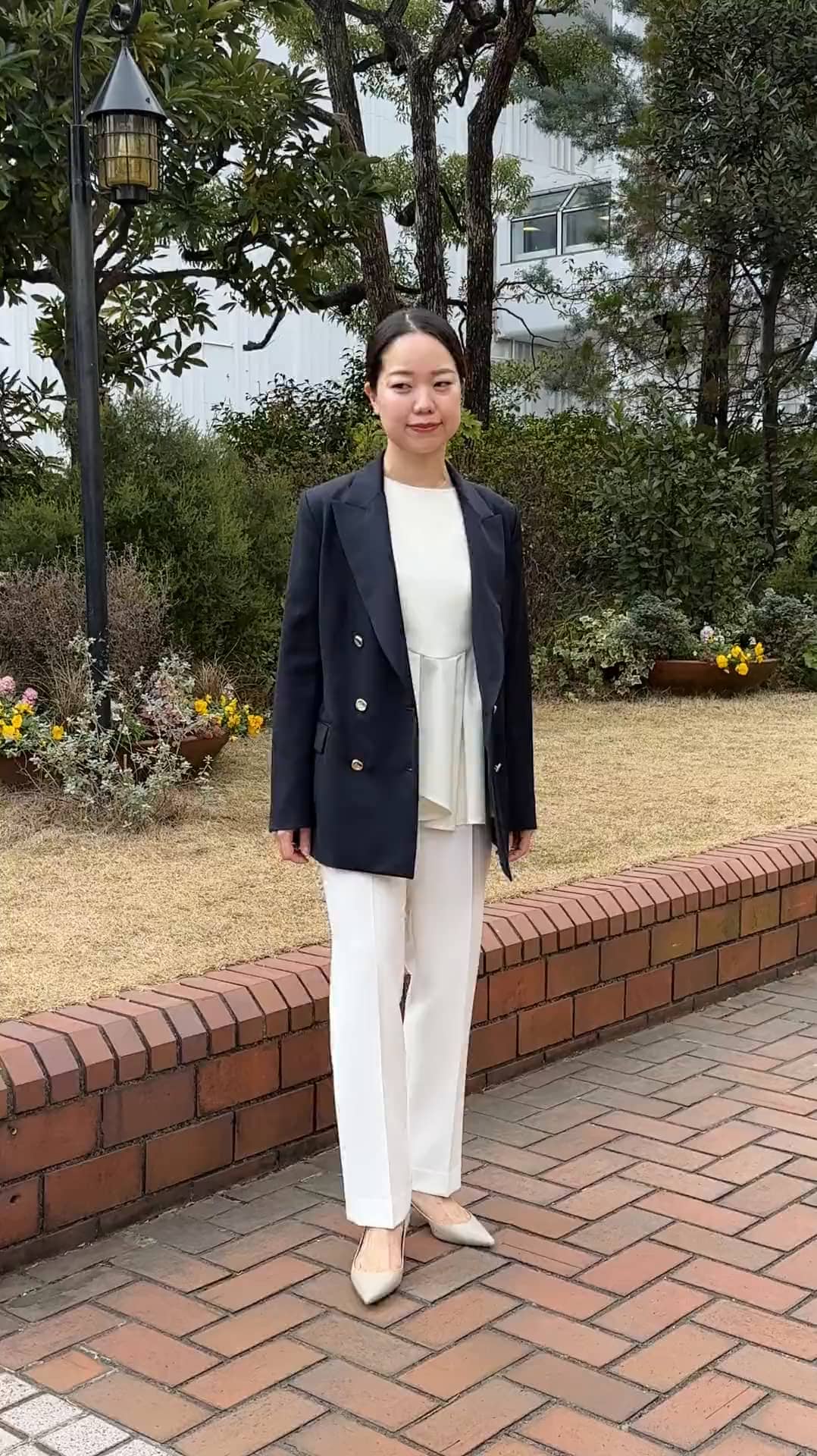 ネイビーに金ボタンのクラシックなブレザースタイルで、幅広いスタイルのコーディネートに合わせて羽織っていただけます✨