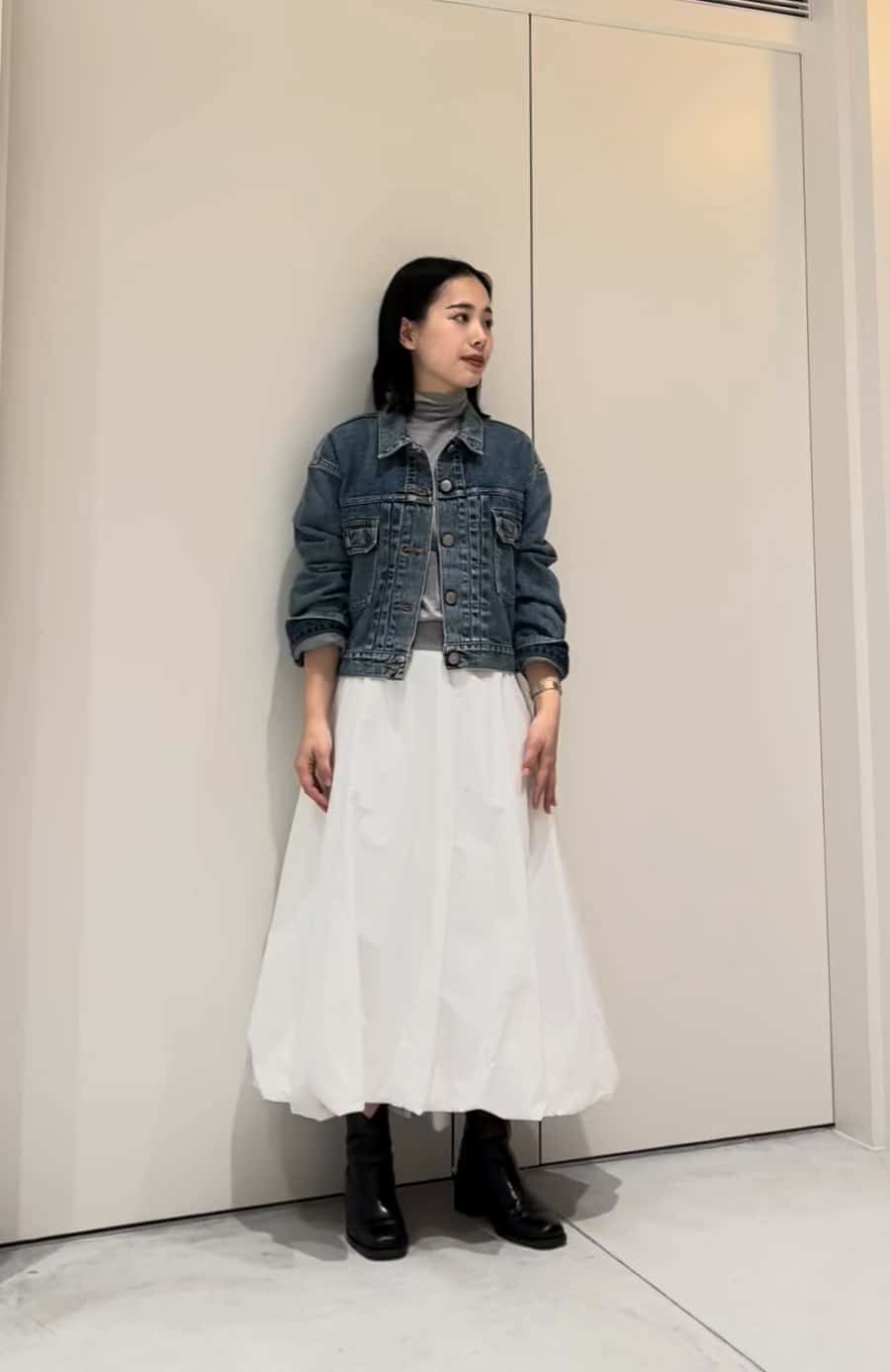 行楽シーズンに予定を作ってお出かけしたくなるような春らしいスタイリング🌸 甘くなりがちなホワイトのスカートもデニムと合わせてカジュアルに◎ インナーはタートルネックを合わせて早い時期から着ていただけると思います✨ ASSEMBLEESTNATION GINZASIX店 TEL:03-6264-5553 営業時間:10:30-20:30