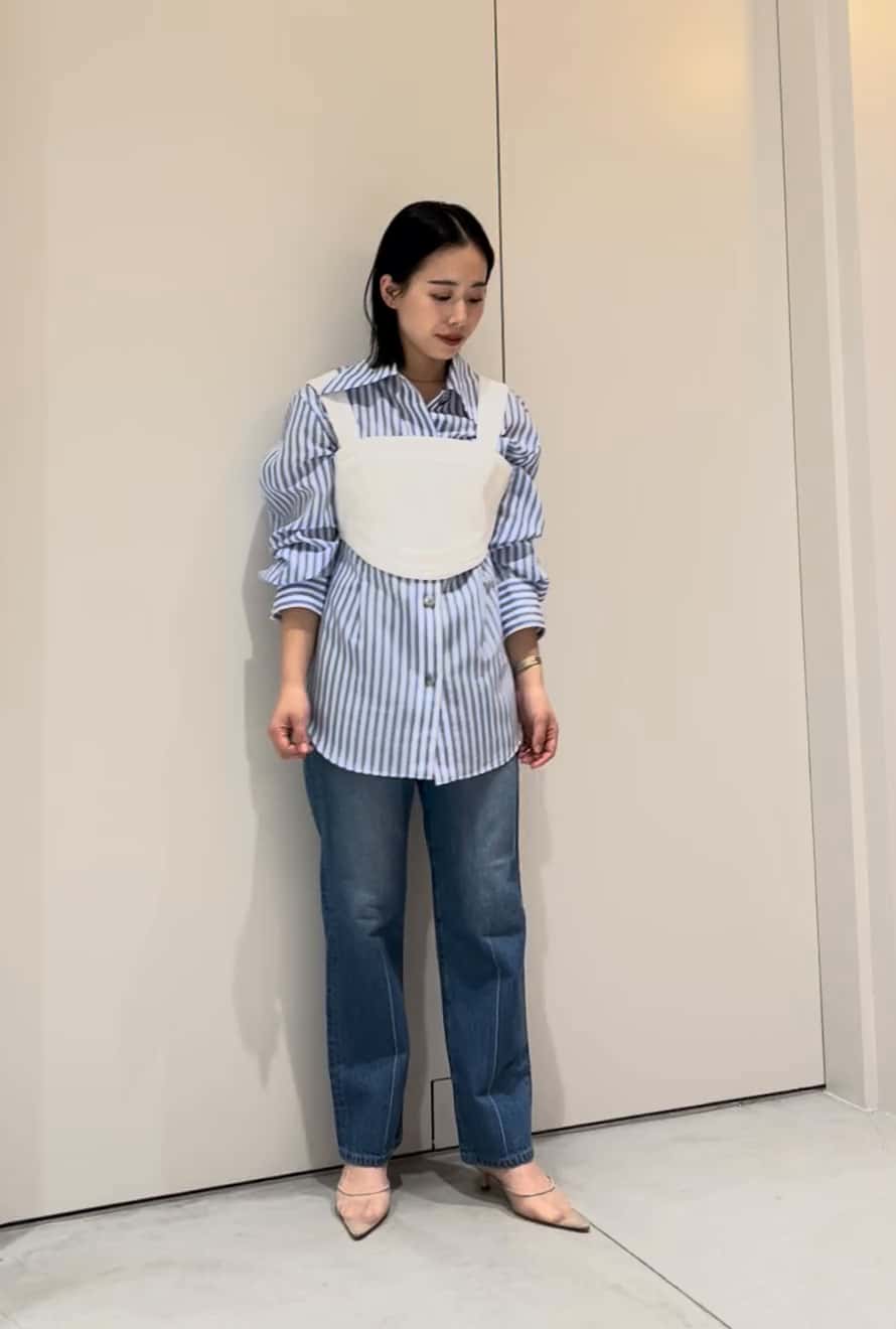 鮮やかなブルーとホワイトの爽やかな色合わせが春らしいスタイリング🌸 ニットからシャツに切り替わるシーズンの今にぴったりな、一枚着としてもレイヤードしても活躍してくれる新作のブラウス◎ パンツは普段スーツパンツを選びがちですが、新作のデニムを選んでお出かけにぴったりなカジュアルなスタイリングにしてみました✨ ASSEMBLEESTNATION GINZASIX店 TEL:03-6264-5553 営業時間:10:30-20:30