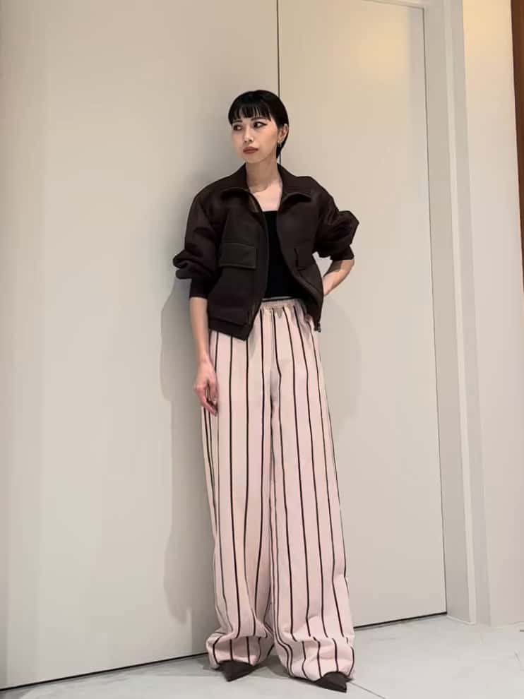 🆕2/11発売 ESSENCEOFLUXURY新作 シアーブルゾン × ストライプパンツ 大きめのポケットが印象的なシアーブルゾン。 程よくハリのある素材感で、カジュアルすぎずモードな印象に🤎 短めの着丈なので、自然とスタイルアップして見え 軽羽織として長いシーズン活躍します。 合わせたパンツは、春らしいピンクベースにストライプ柄を効かせたワイドシルエット🌸 動くたびに揺れる落ち感が美しく、 どこかリゾートムードも感じられる一本です🏝️ デイリーにはもちろん、 旅行先やお出かけなど、気分を上げたいシーンにもおすすめのスタイリング✨ ※サイズ感について 166cmで36サイズを着用しています。 ヒールを履いても丈がやや長めのため、裾上げが必要な丈感です📏✂️🧵 店頭にてご覧いただけます。 お気軽にお立ち寄りくださいませ☆ ASSEMBLEESTNATION GINZASIX店 TEL:03-6264-5553 営業時間:10:30-20:30